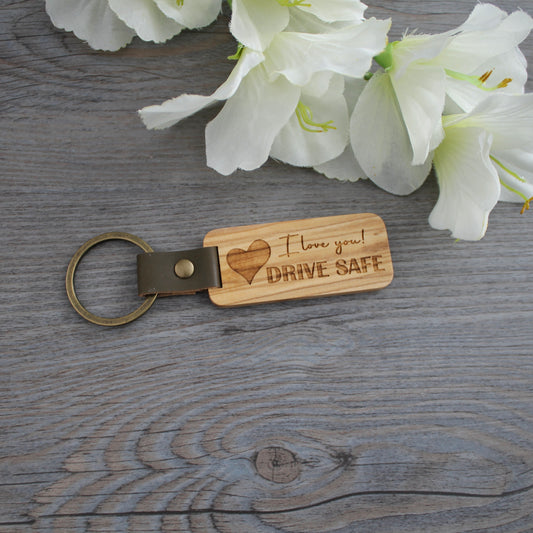 Personalized Leather & Wood Keychain
