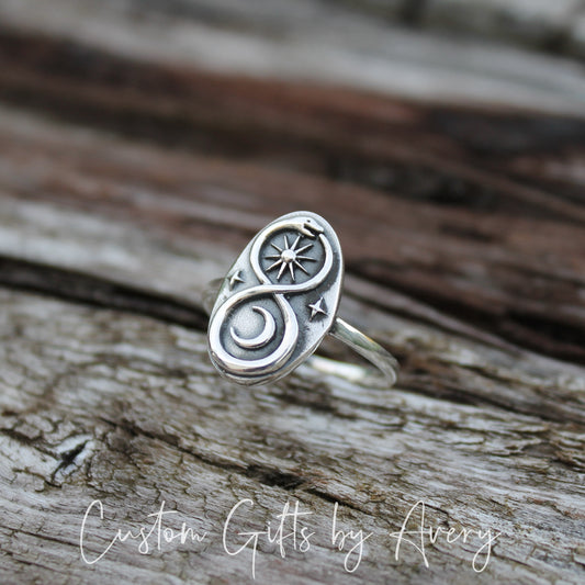 Oxidized Sterling Silver Celestial Sun and Moon Band Ring