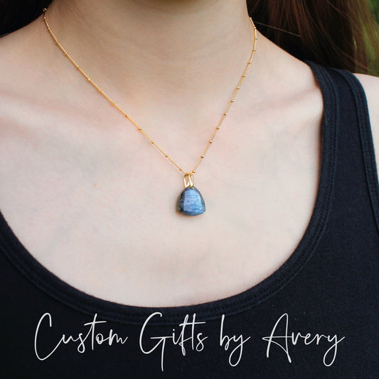 Trillion Cut Labradorite Necklace in Gold-Filled or Sterling Silver
