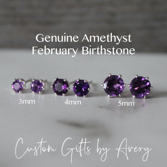 Tiny Sterling Silver & Genuine Amethyst Studs