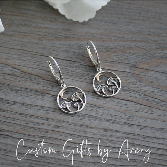 Sterling Silver & Bronze Mushroom & Crescent Moon Earrings