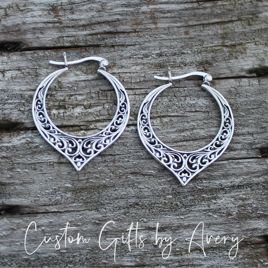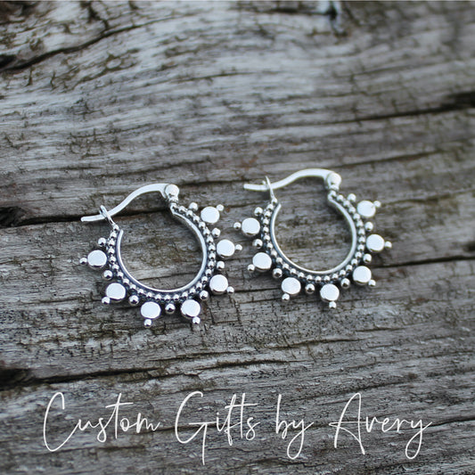 Sterling Silver Dotted Bohemian Hoop Earrings