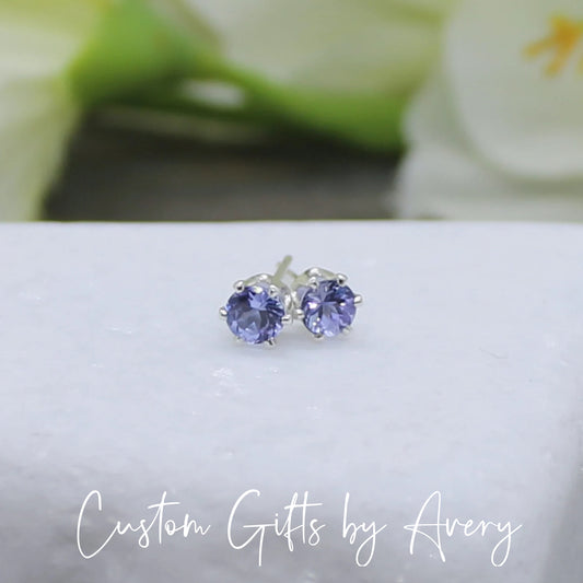 Tiny Sterling Silver & Genuine Tanzanite Studs ~ 4mm