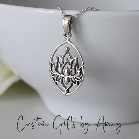 Sterling Silver Marquis Lotus Flower Necklace