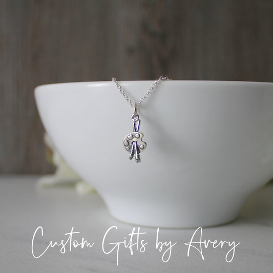 Tiny Sterling Silver Paint Brush and Palette Necklace