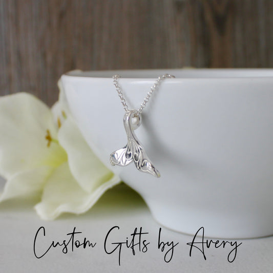 Sterling Silver Mermaid or Whale Tail with Ocean Waves Necklace