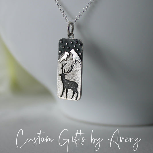 Sterling Silver Deer & Snow Capped Mountain Necklace