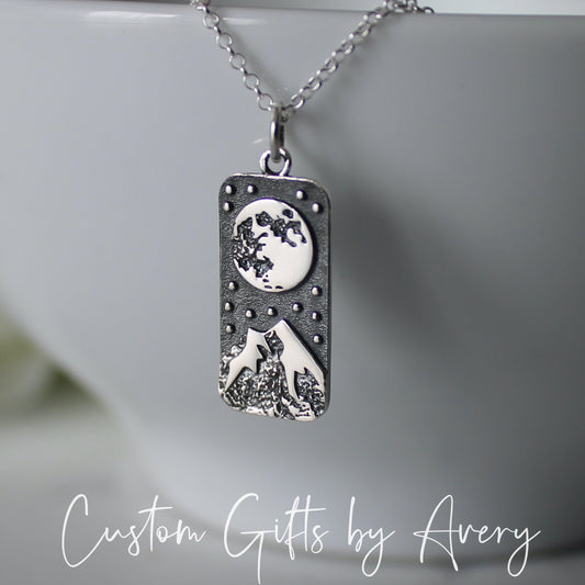 Sterling Silver Full Moon & Snow Capped Mountain Necklace