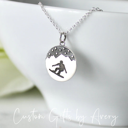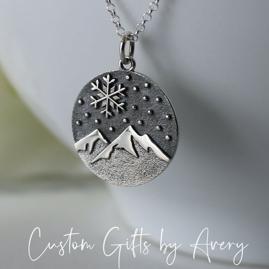 Sterling Silver Snow Capped Mountain & Snowflake Necklace