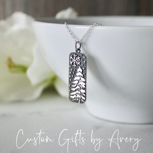 Sterling Silver Winter Pine Tree & Snowflake Necklace