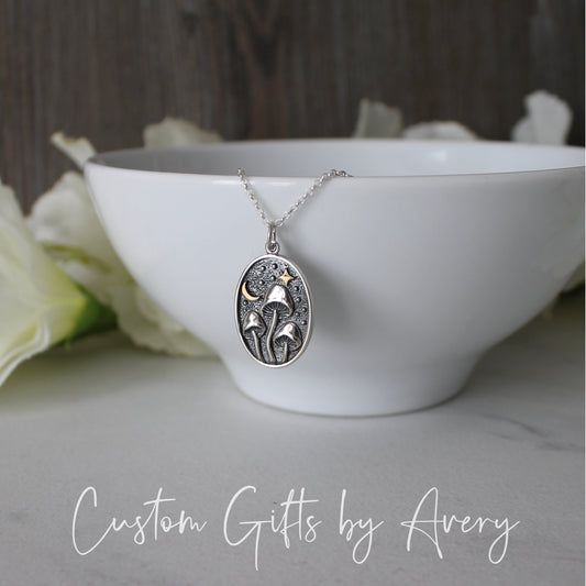 Tiny Sterling Silver Agaric Mushroom Necklace