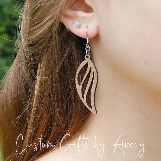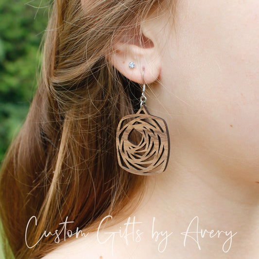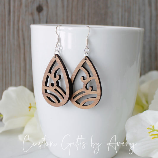 Teardrop Swirl Cut Out Earrings in Walnut Wood