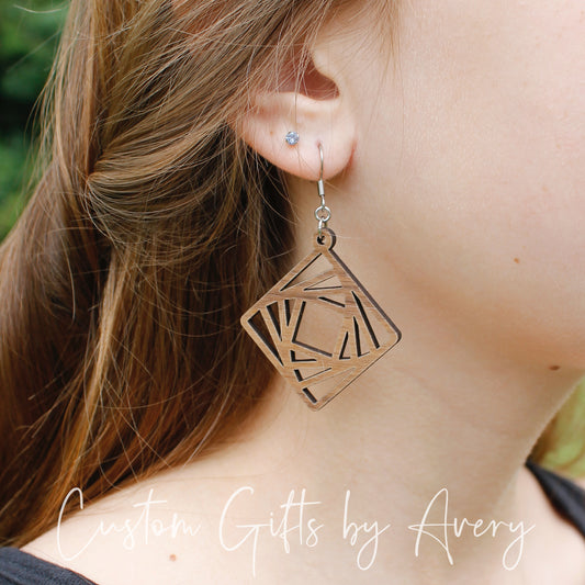 Spiralling Diamond Geometric Earrings in Walnut Wood