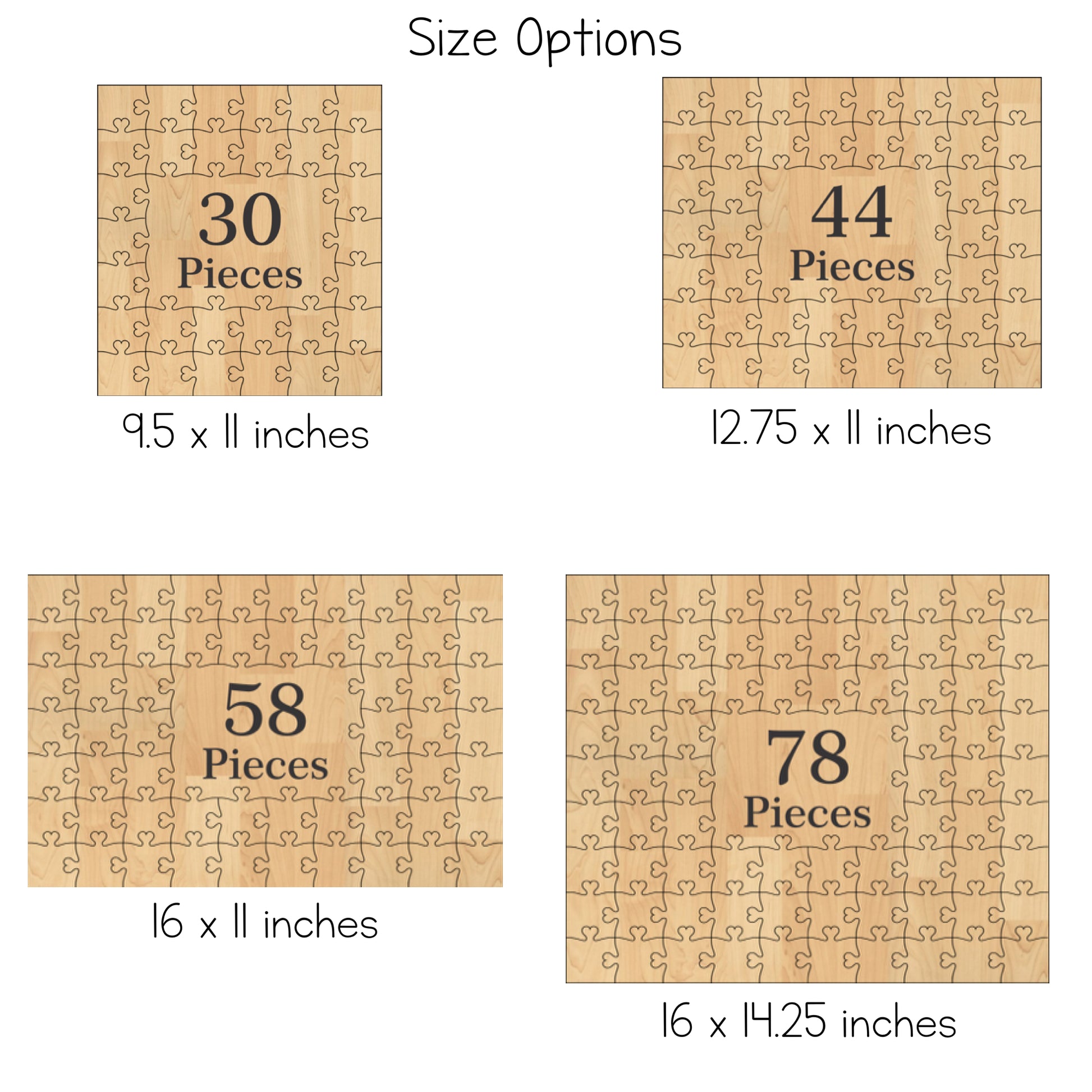 Our puzzles are available in a large selection of sizes to suit your needs. Larger puzzles are available upon special request.
