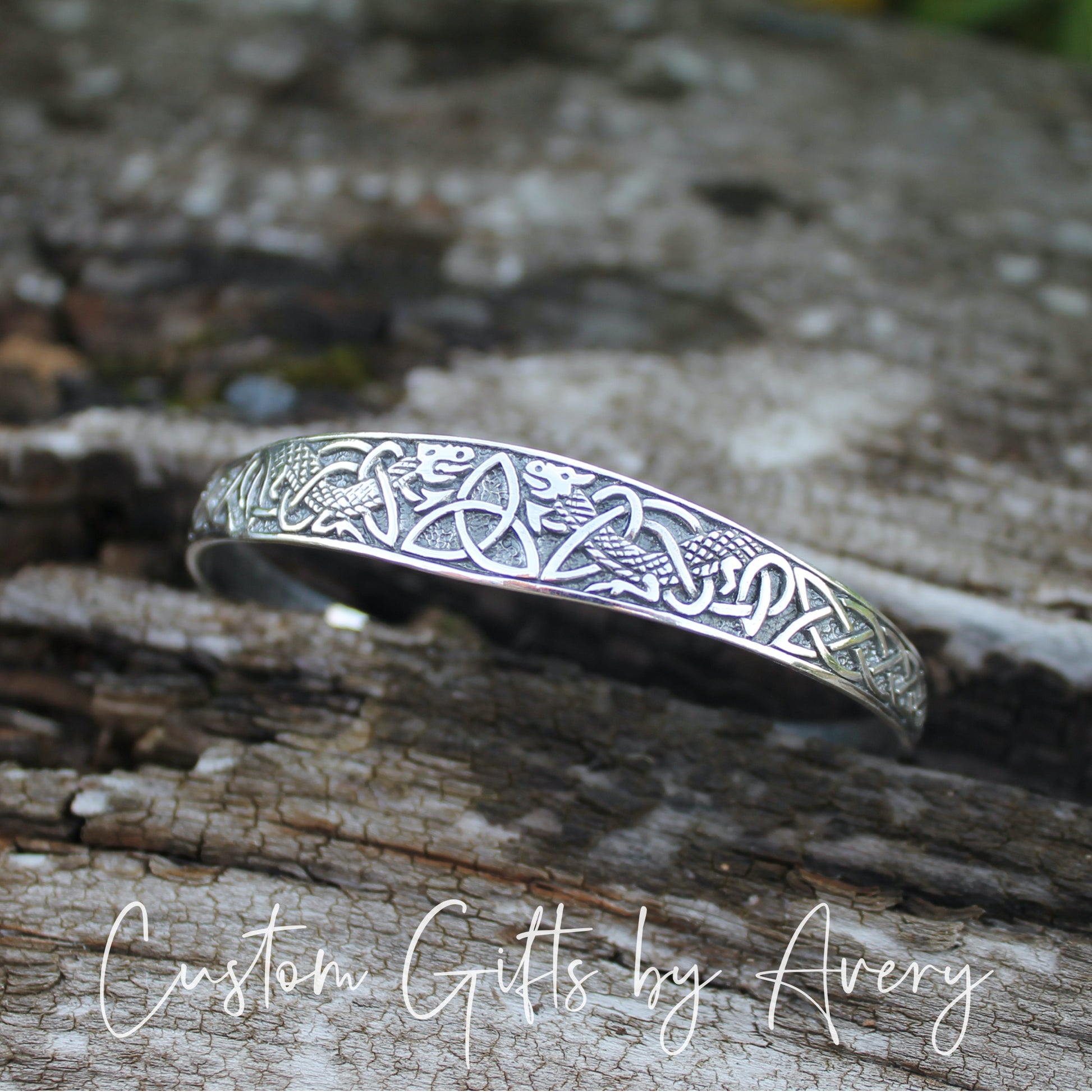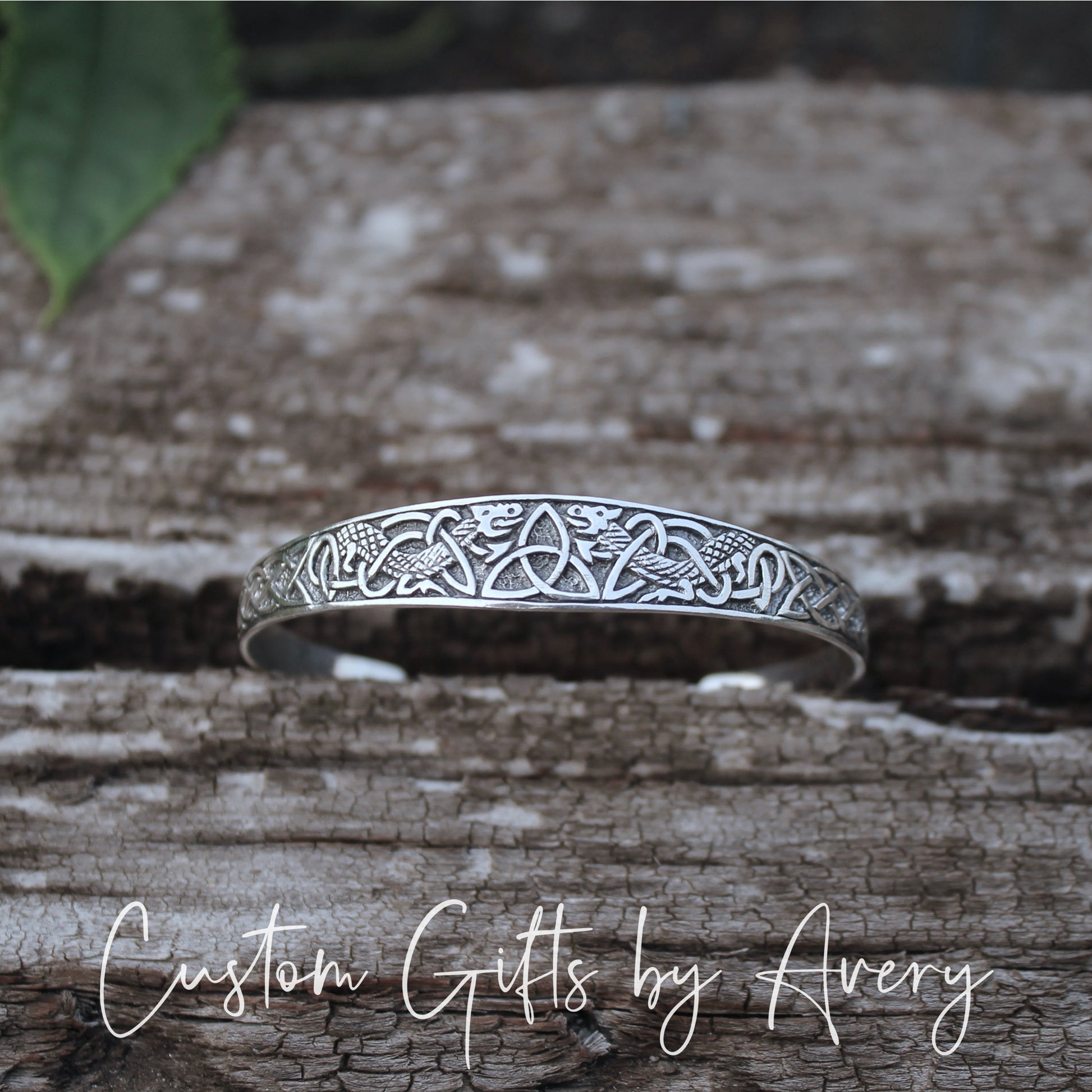 Adjustable Sterling Silver Celtic Triquetra & Dragon Cuff Bracelet