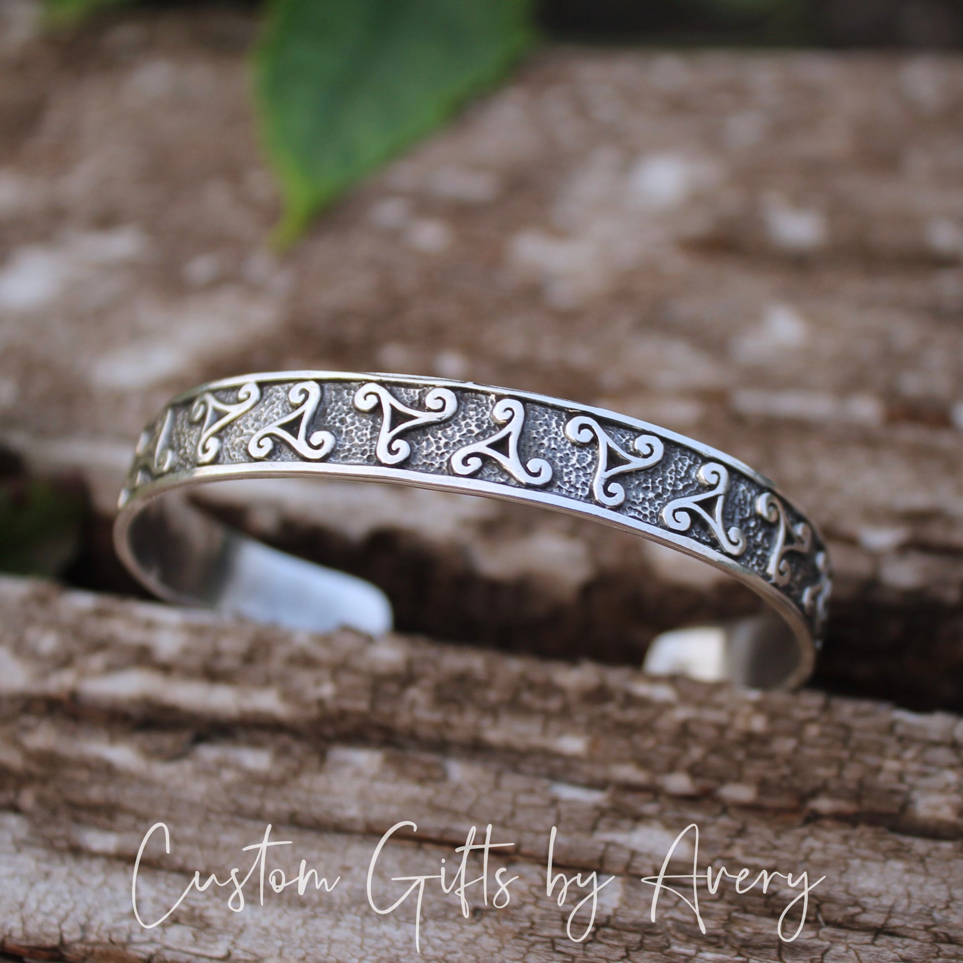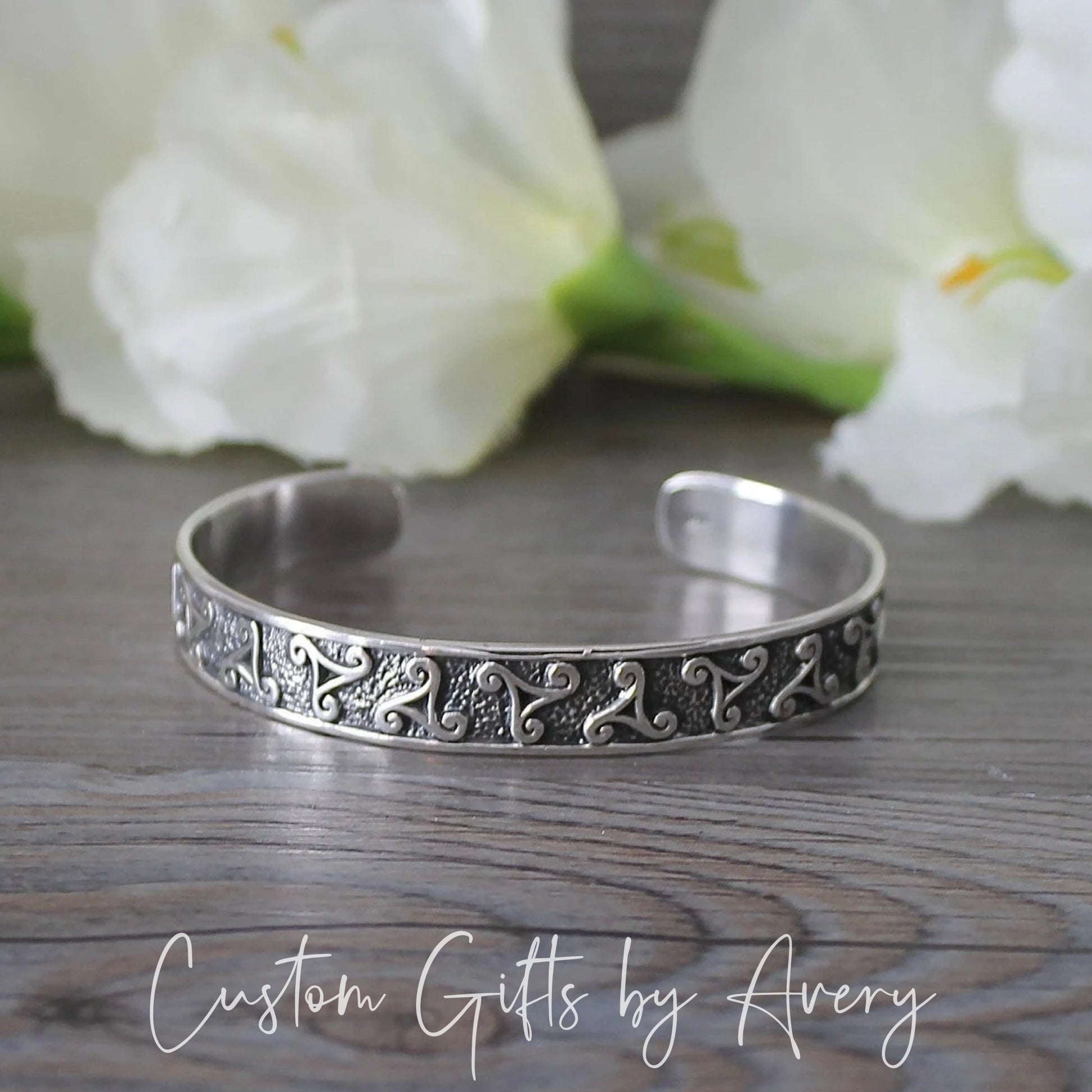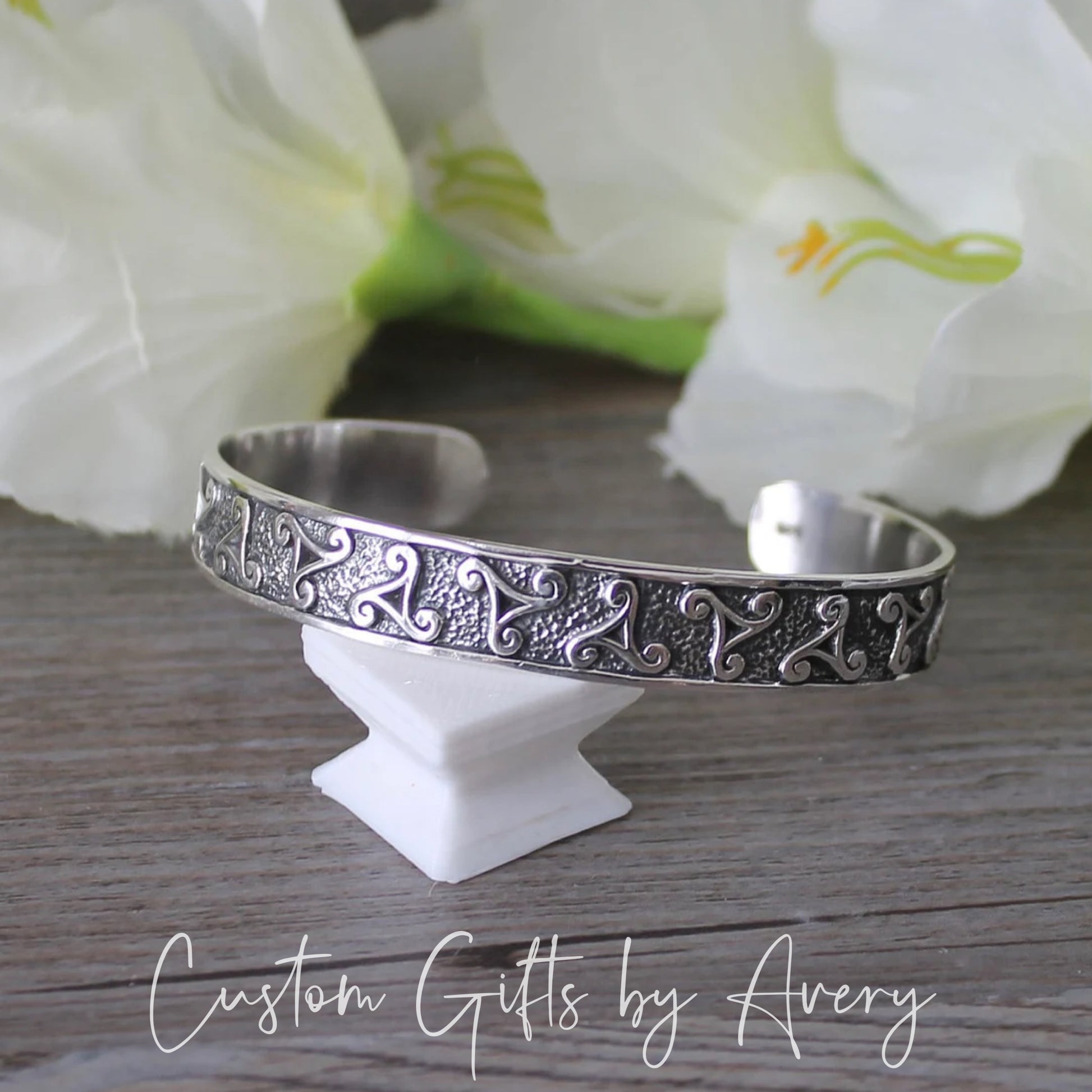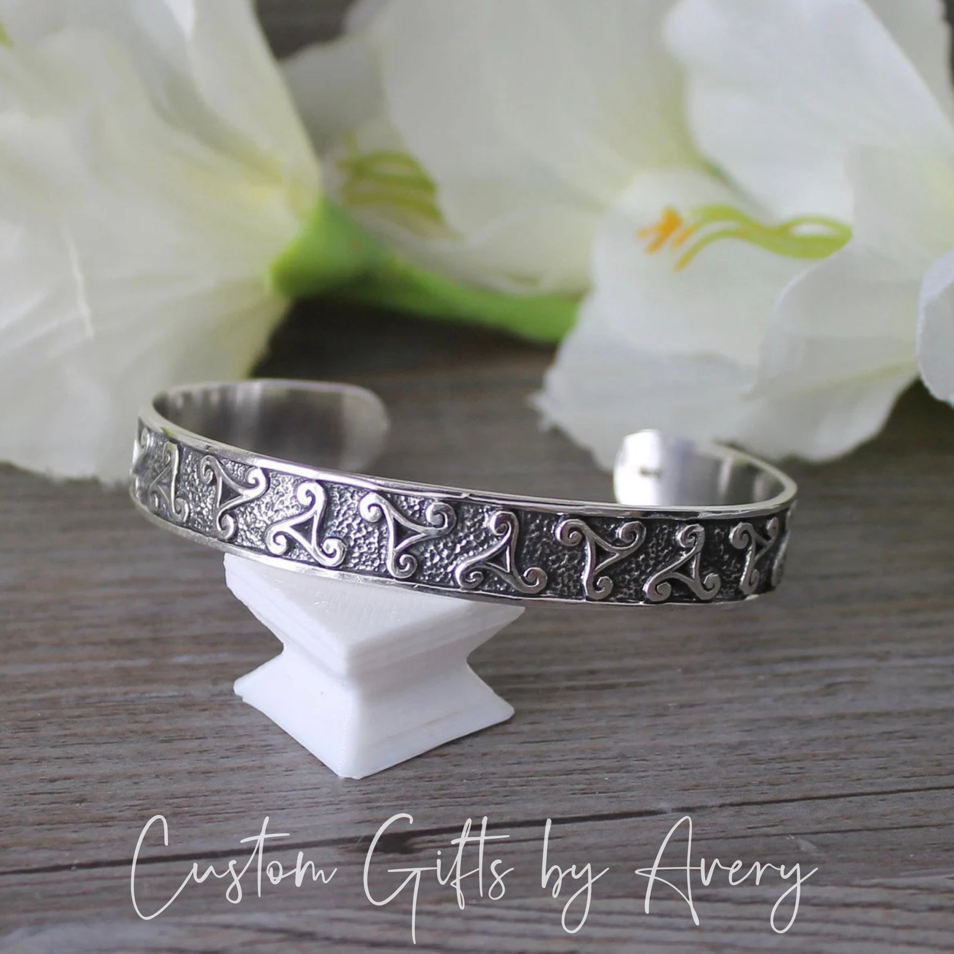 Adjustable Sterling Silver Triskele Triple Spiral Cuff Bracelet