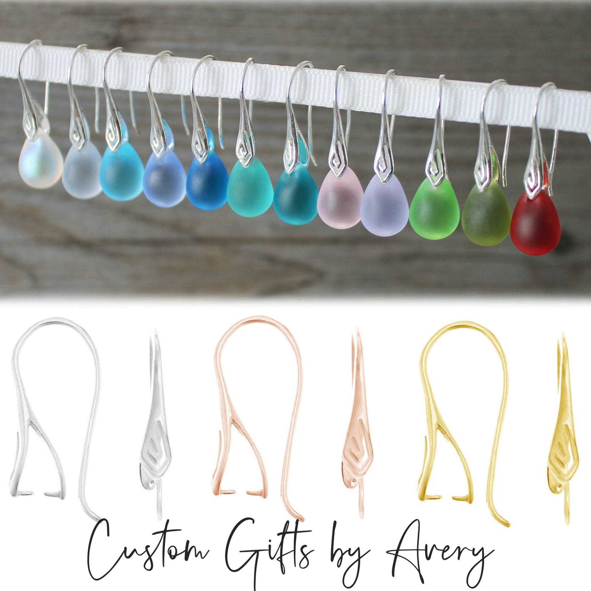 These cultured sea glass earrings are made with high-quality frosted glass that resembles ocean tumbled sea glass, but is consistent in shape, colour, and size and comes at a fraction of the price! These gorgeous little gems are hung on high quality, nickel-free sterling silver lever backs or decorative fish hook ear wires (in sterling silver, 18Kt rose gold vermeil, or 24kt gold vermeil).