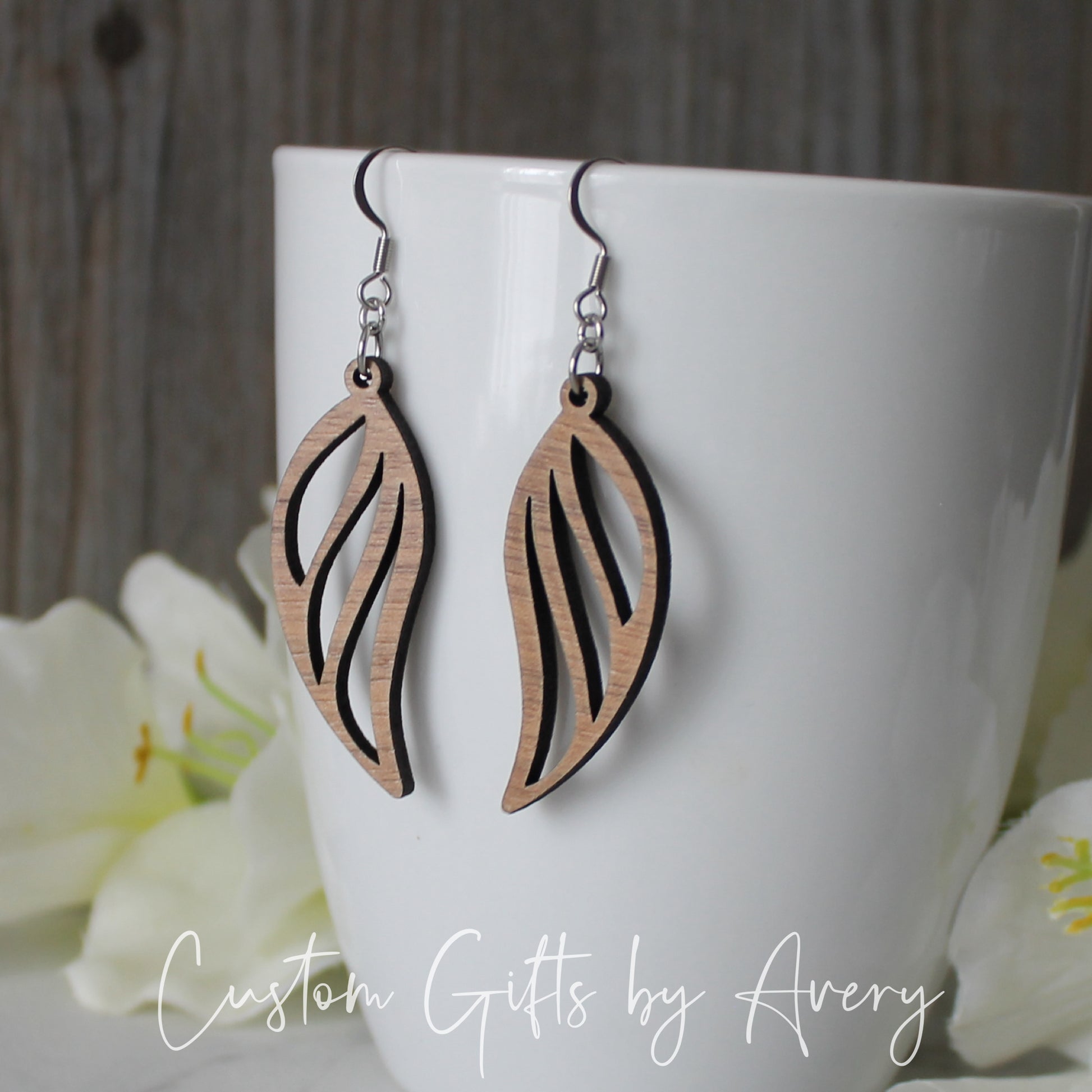 These delicate and intricate earrings have been laser cut from walnut wood. Despite their size, they are incredibly lightweight and very comfortable to wear. They hang from 316L grade stainless steel earring hooks. Stainless steel hooks are the same grade used in industrial and food-processing applications- they are moisture resistant moisture and will not oxidize.