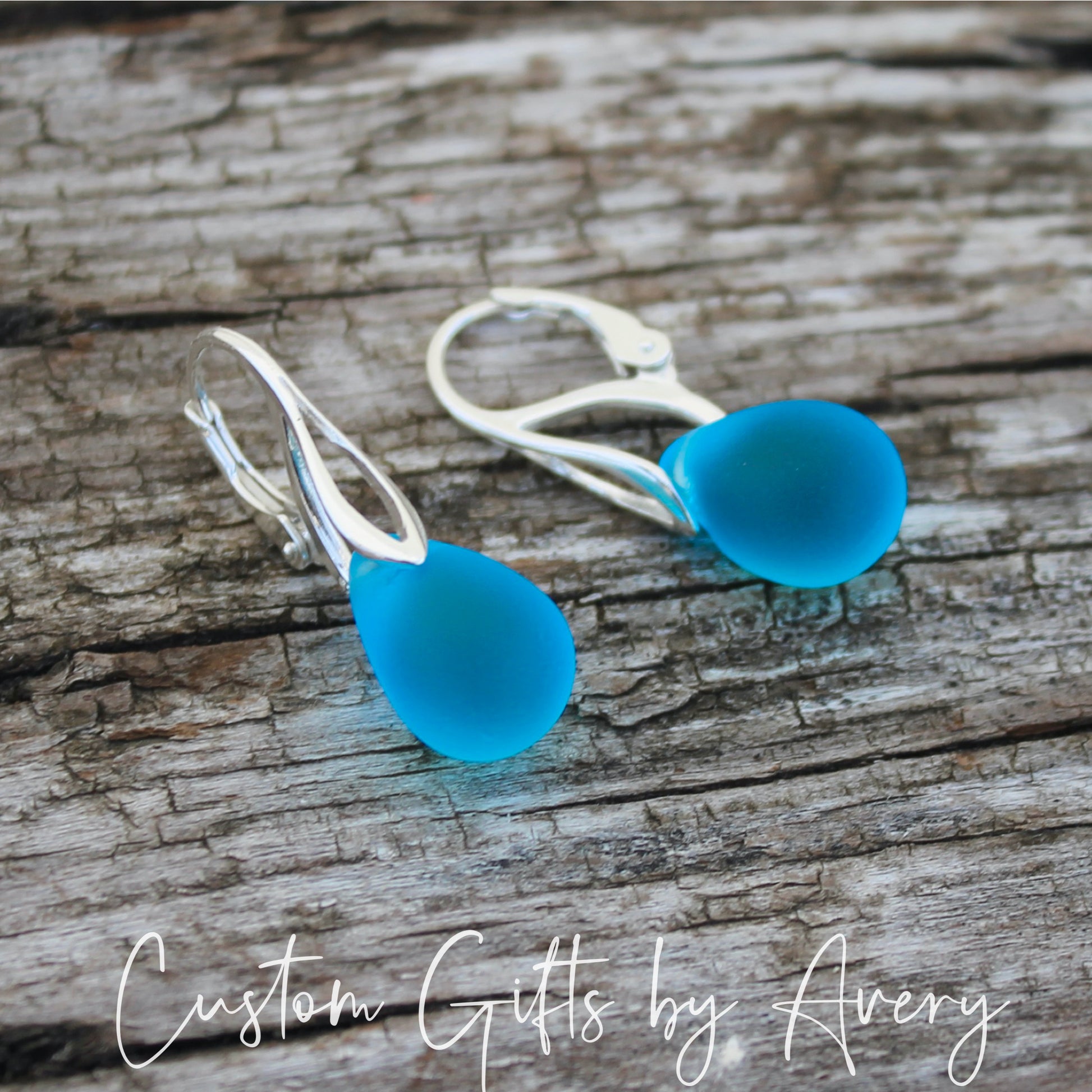These cultured sea glass earrings are made with high-quality frosted glass that resembles ocean tumbled sea glass, but is consistent in shape, colour, and size and comes at a fraction of the price! These gorgeous little gems are hung on high quality, nickel-free sterling silver lever backs or decorative fish hook ear wires (in sterling silver, 18Kt rose gold vermeil, or 24kt gold vermeil).
