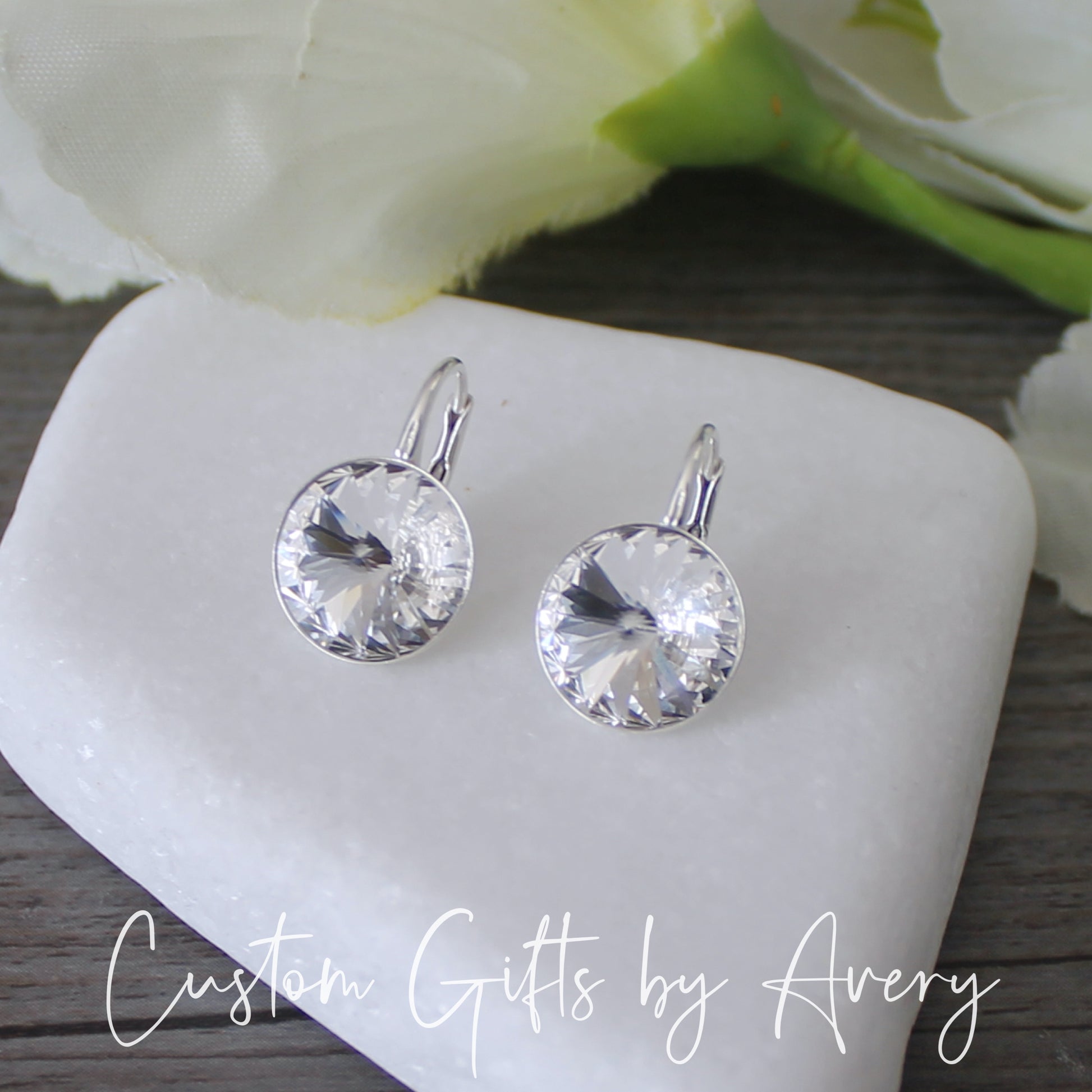 Absolutely stunning at a fraction of the price! These crystal earrings are created using high quality Austrian crystals and precious metals. The sparkle and brilliance of these crystals is difficult to capture in a photograph; these earrings are even more beautiful in person. These clear Austrian crystals are brilliant, with no hints of yellow undertones.