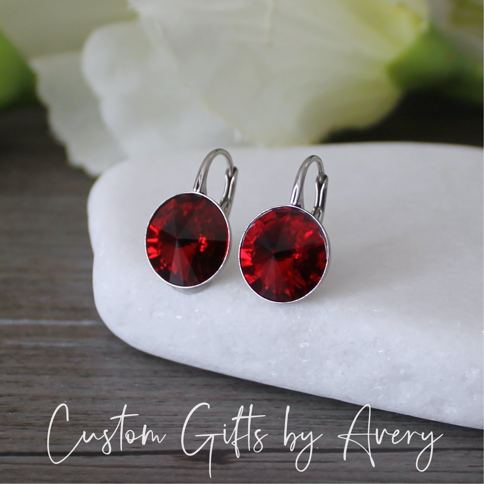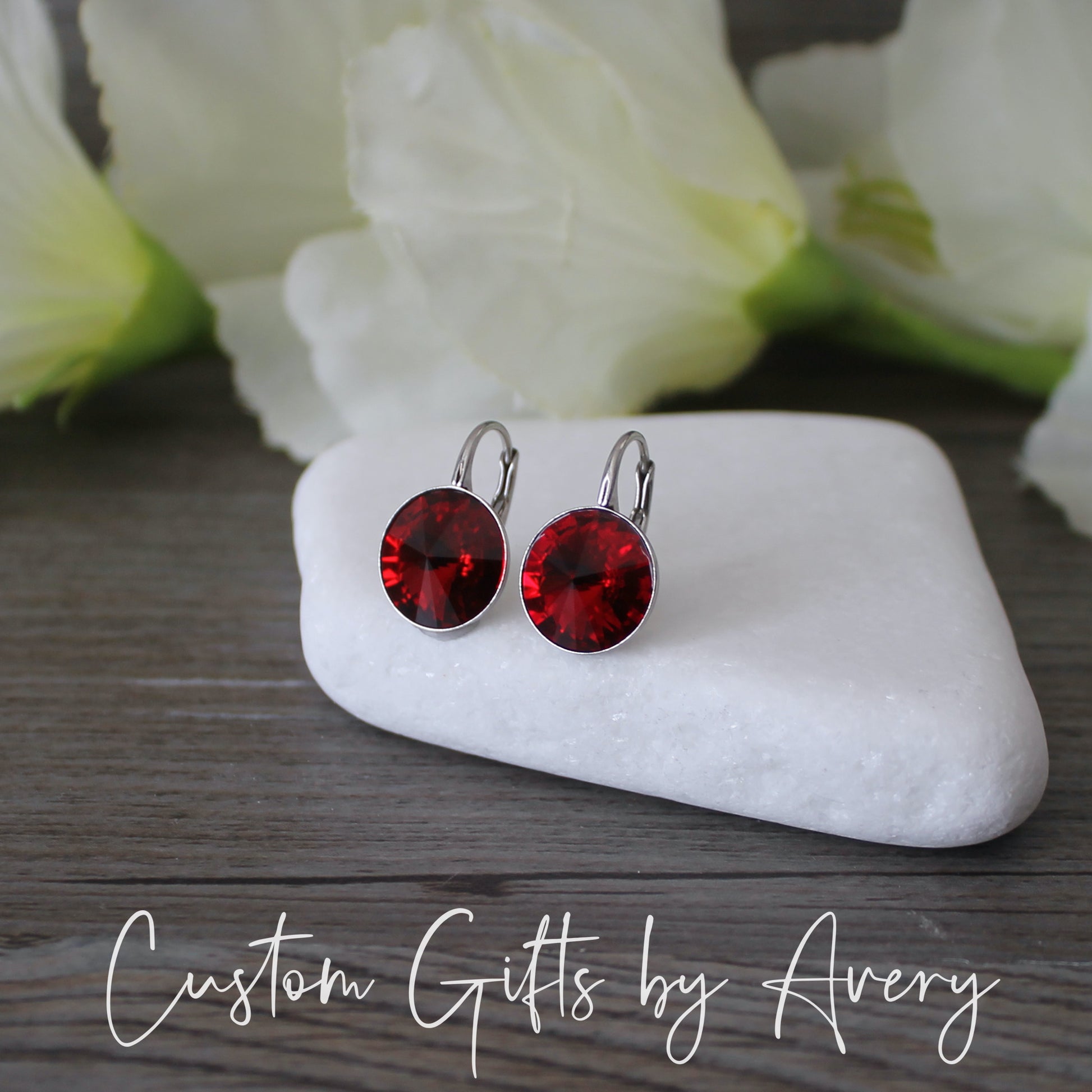 Absolutely stunning at a fraction of the price! These crystal earrings are created using the highest quality Austrian crystals and precious metals. The sparkle and brilliance of these crystals is difficult to capture in a photograph; these earrings are even more beautiful in person. These Austrian crystals are a deep dark red.