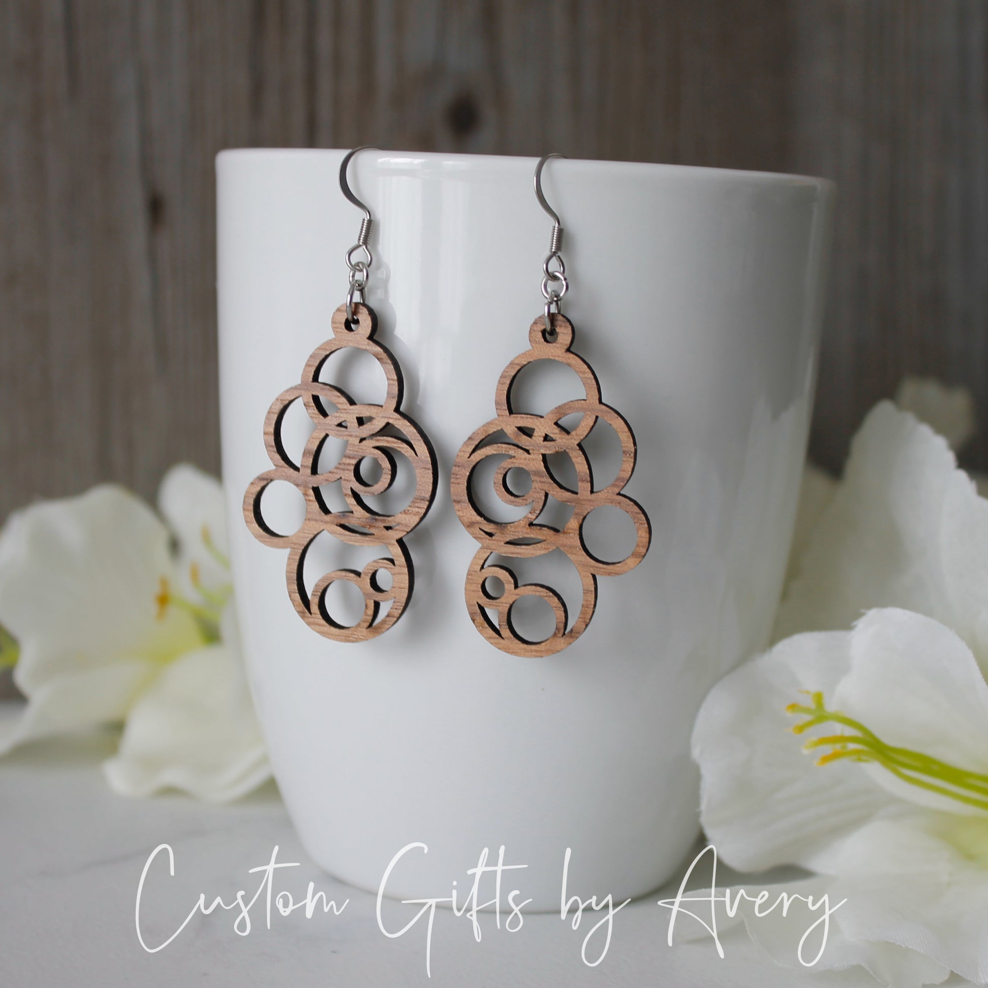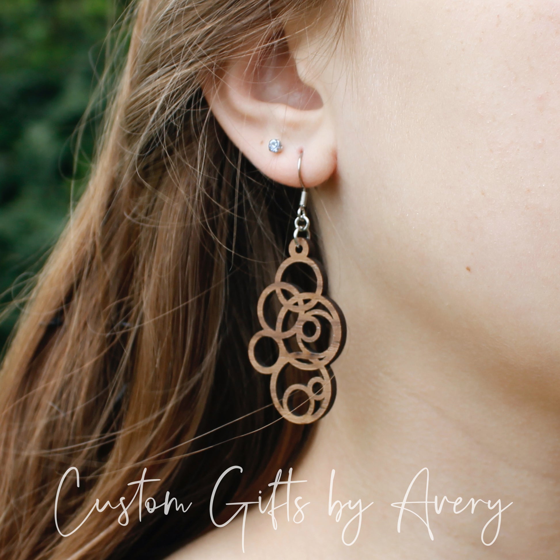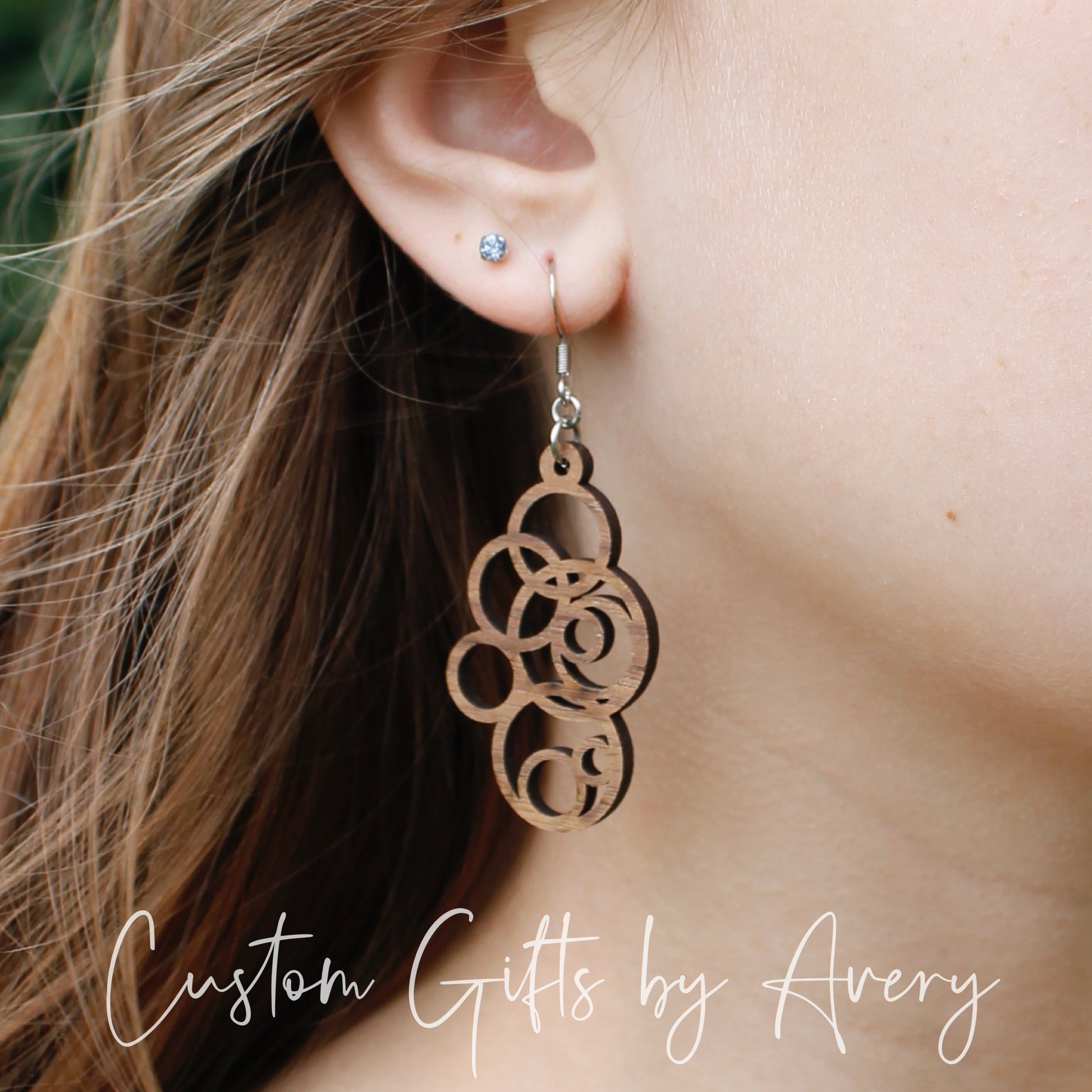 These delicate and intricate earrings have been laser cut from walnut wood. Despite their size, they are incredibly lightweight and very comfortable to wear. They hang from 316L grade stainless steel earring hooks. Stainless steel hooks are the same grade used in industrial and food-processing applications- they are moisture resistant moisture and will not oxidize.