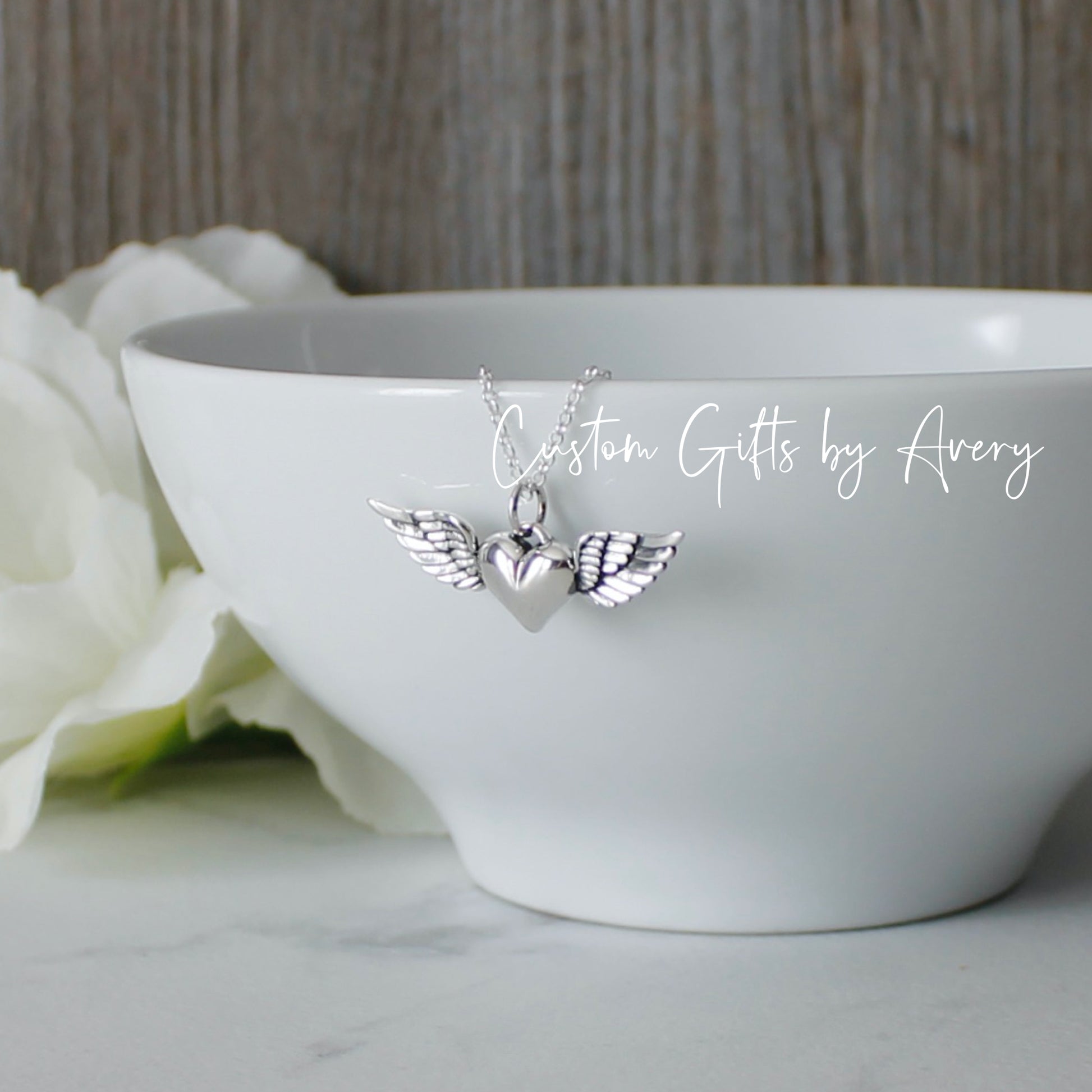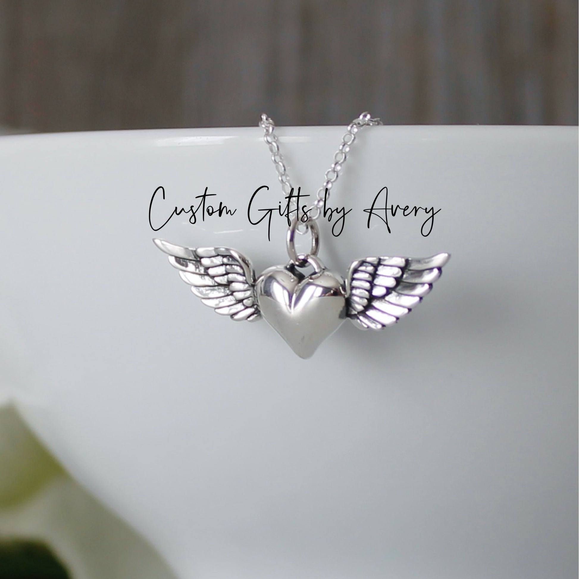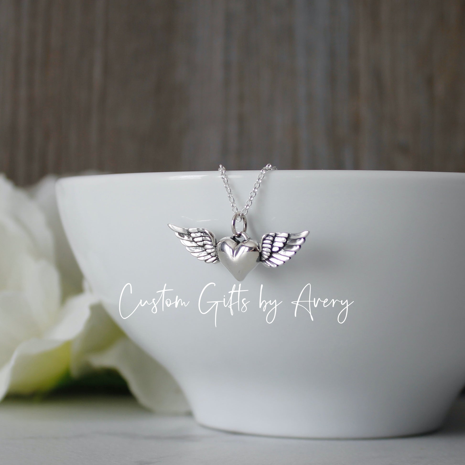 Sterling Silver Winged Heart Memorial Necklace