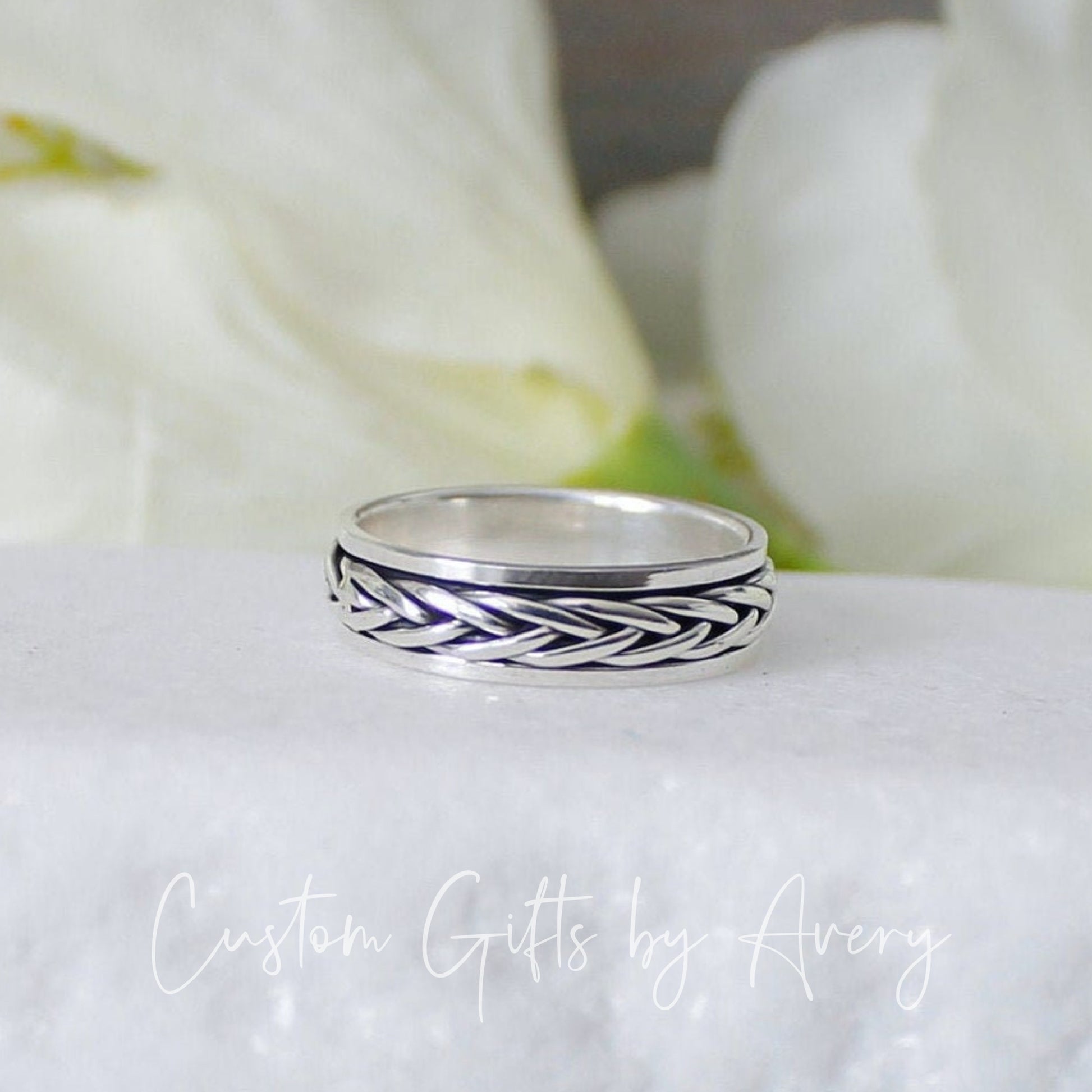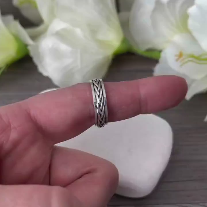 Sterling Silver Celtic Braided Weave Spin Ring ~ 5.5mm Band