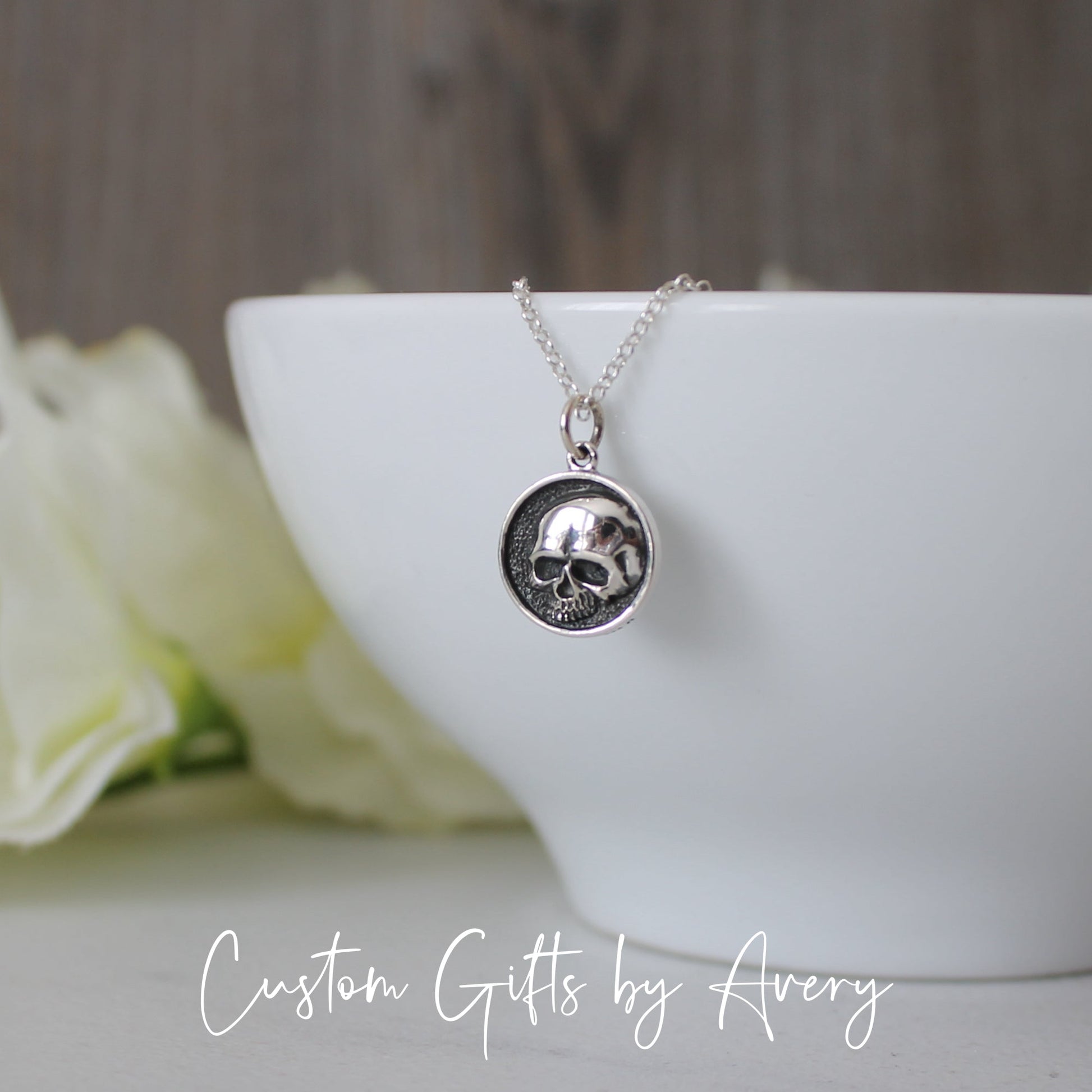 Live each day as if it were your last - This pendant is part of our Memento Mori collection. Crafted in .925 sterling silver, this tiny skull coin is a discrete reminder that all things come to an end and to live each day to its fullest.