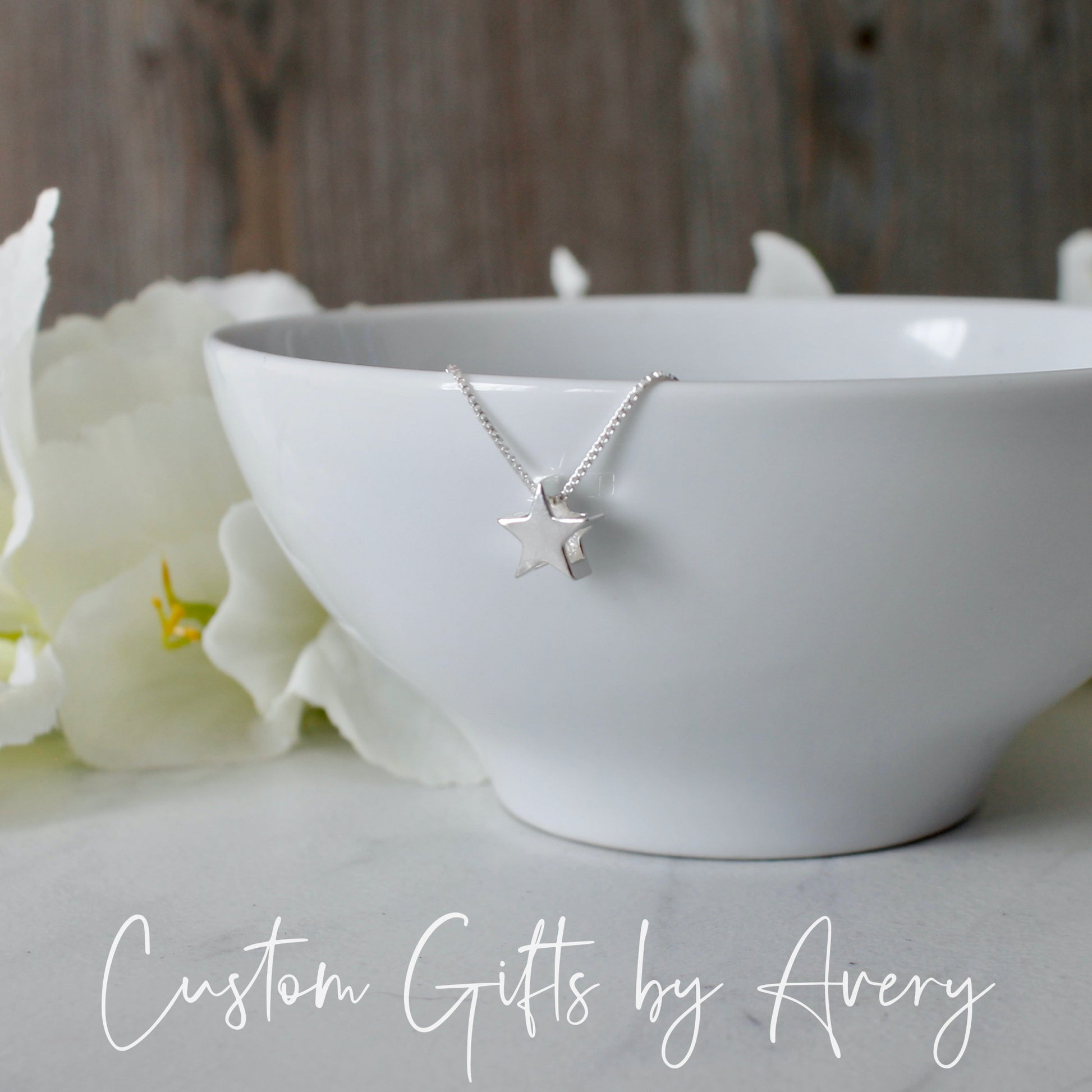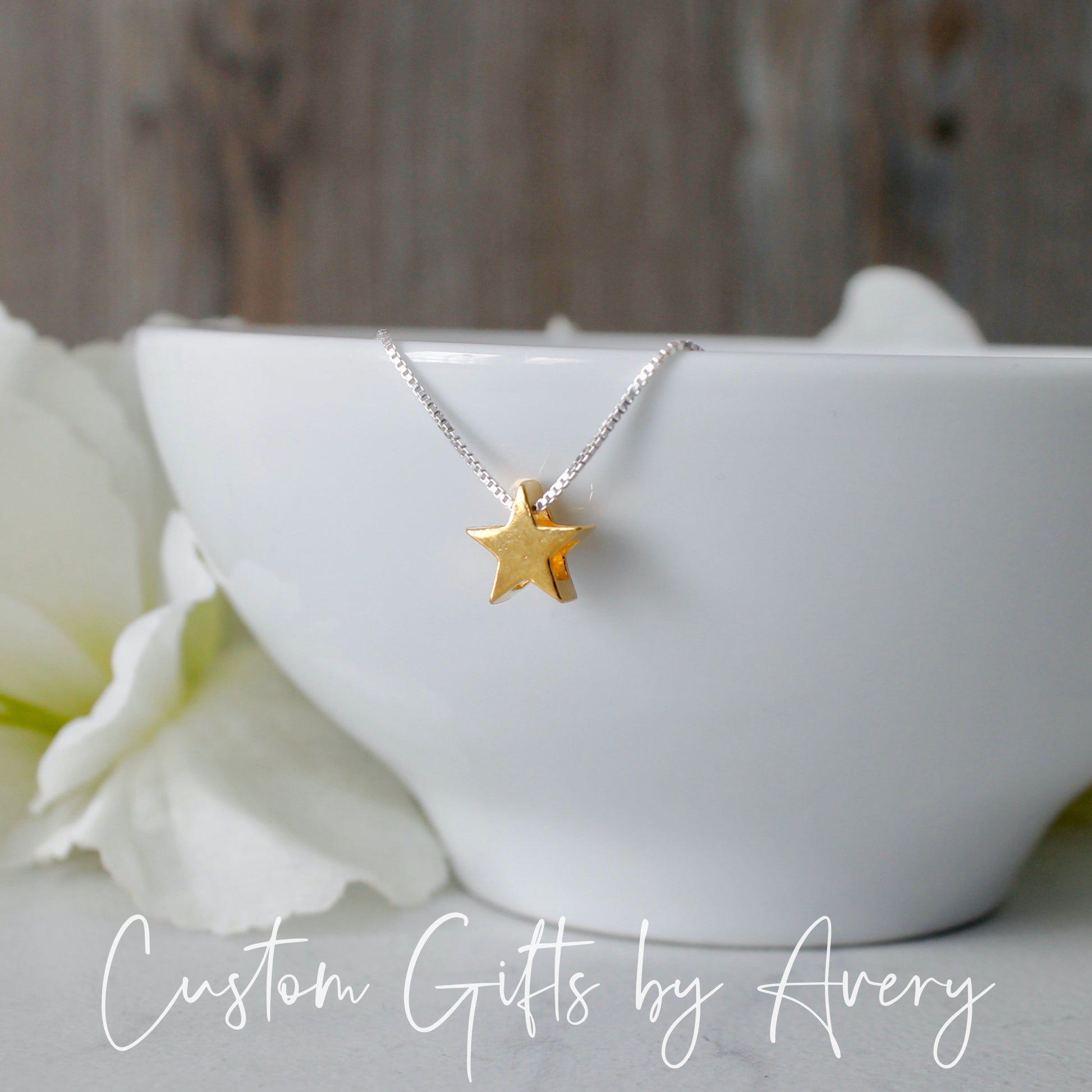 A petite floating sterling silver or 24TK gold vermeil star floats dances freely along the chain. A simple but meaningful piece that can be worn everyday and is perfect for layering.