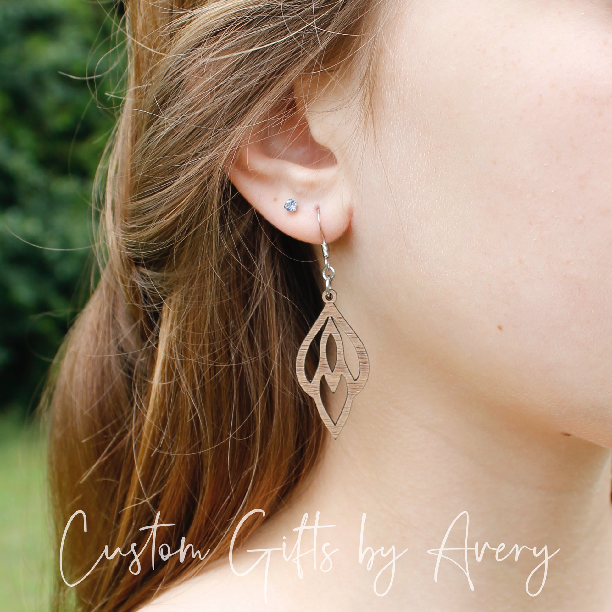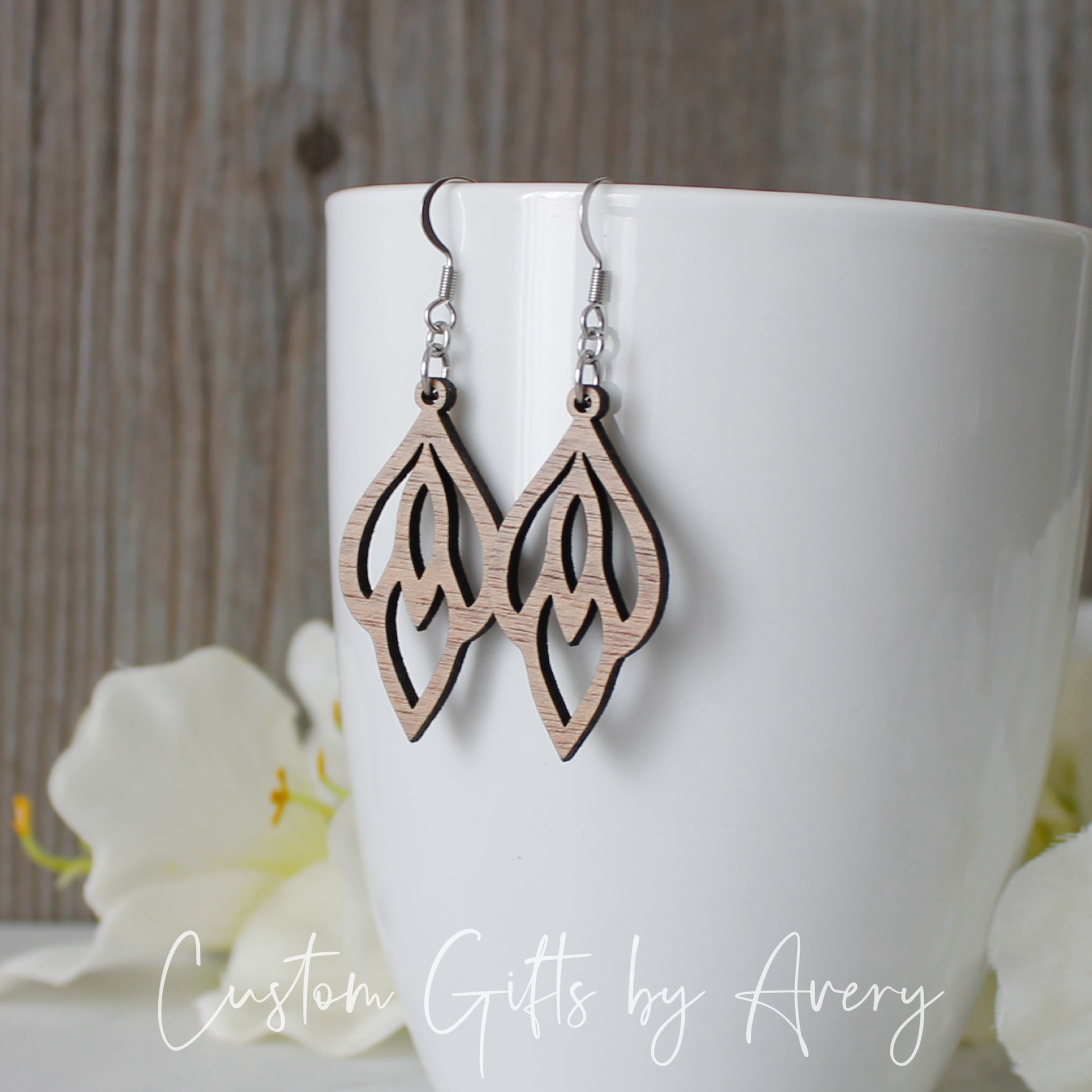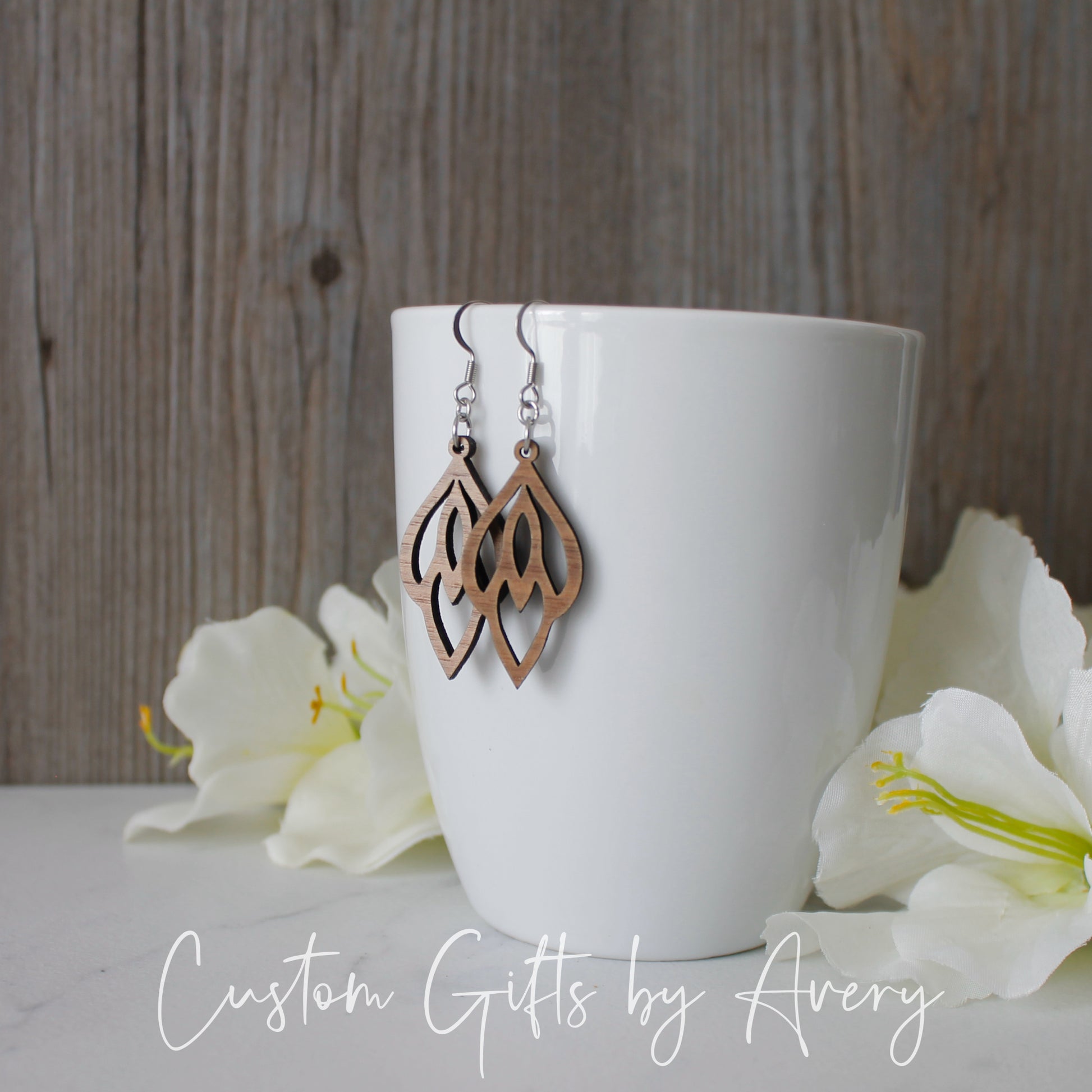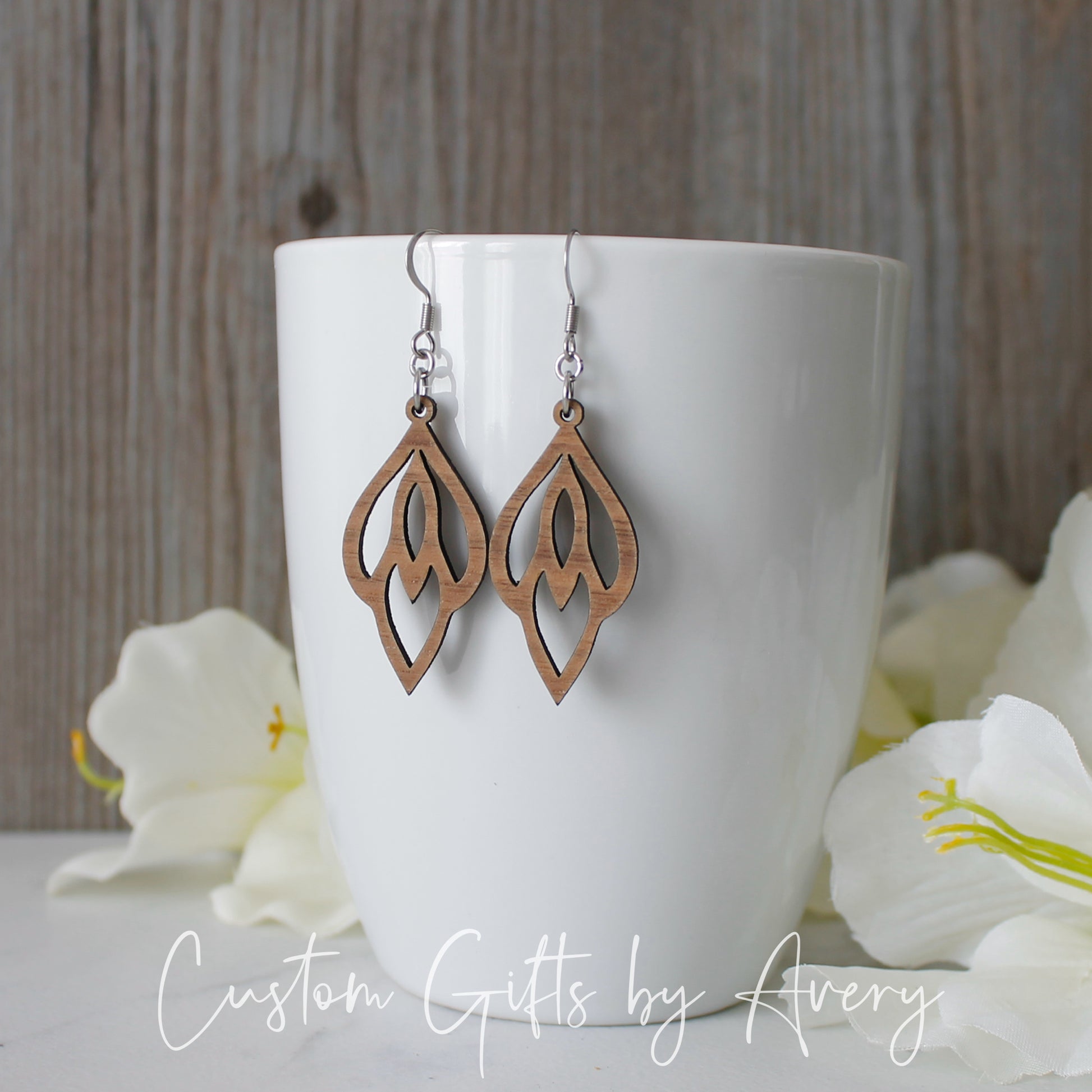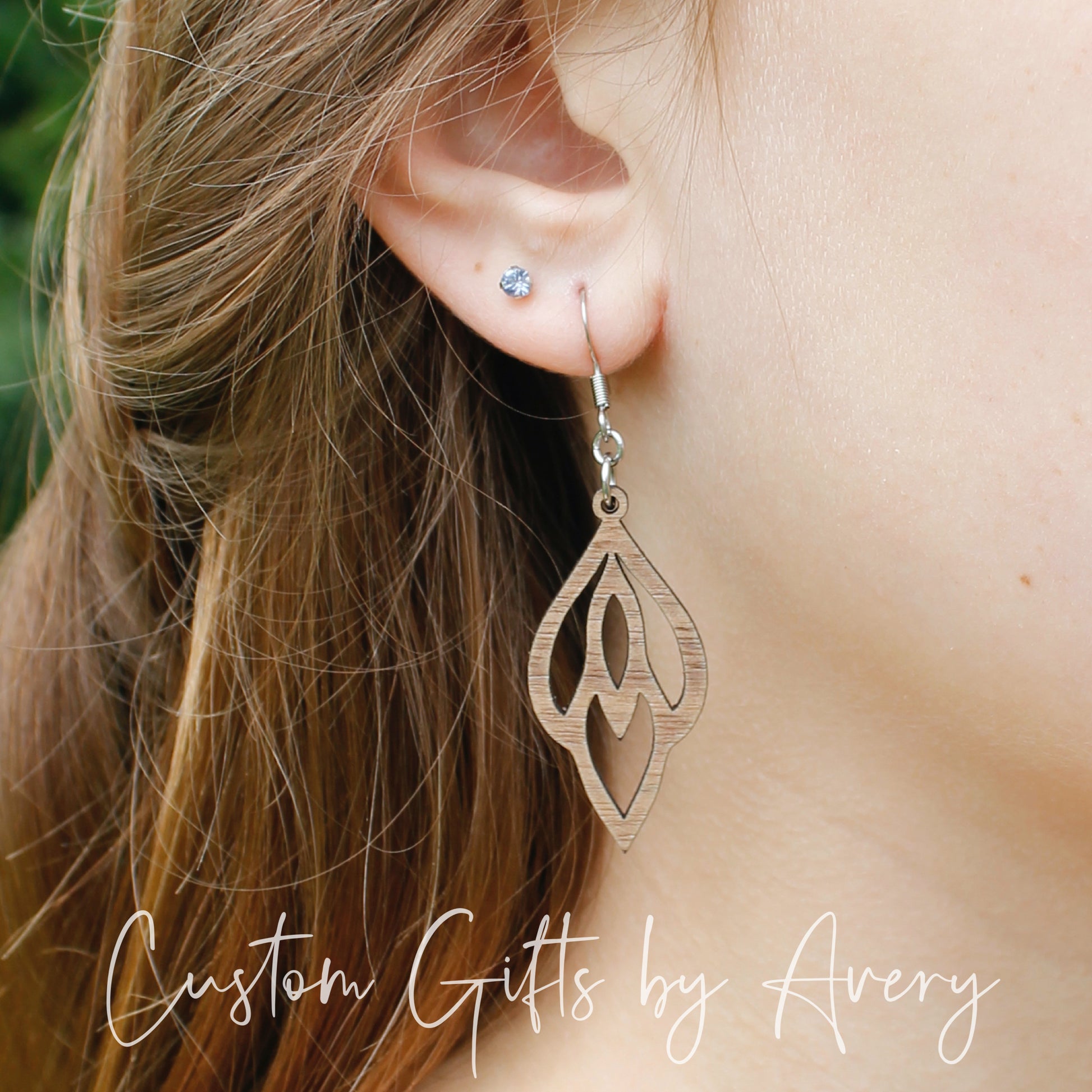 These delicate and intricate earrings have been laser cut from walnut wood. Despite their size, they are incredibly lightweight and very comfortable to wear. They hang from 316L grade stainless steel earring hooks. Stainless steel hooks are the same grade used in industrial and food-processing applications- they are moisture resistant moisture and will not oxidize.