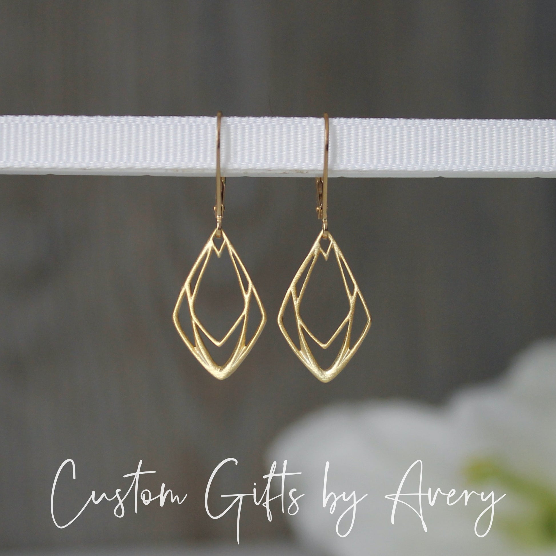 Gorgeous geometric teardrops hang from your choice of sterling silver or 14KT gold-filled lever backs. They are lightweight & comfortable to wear.