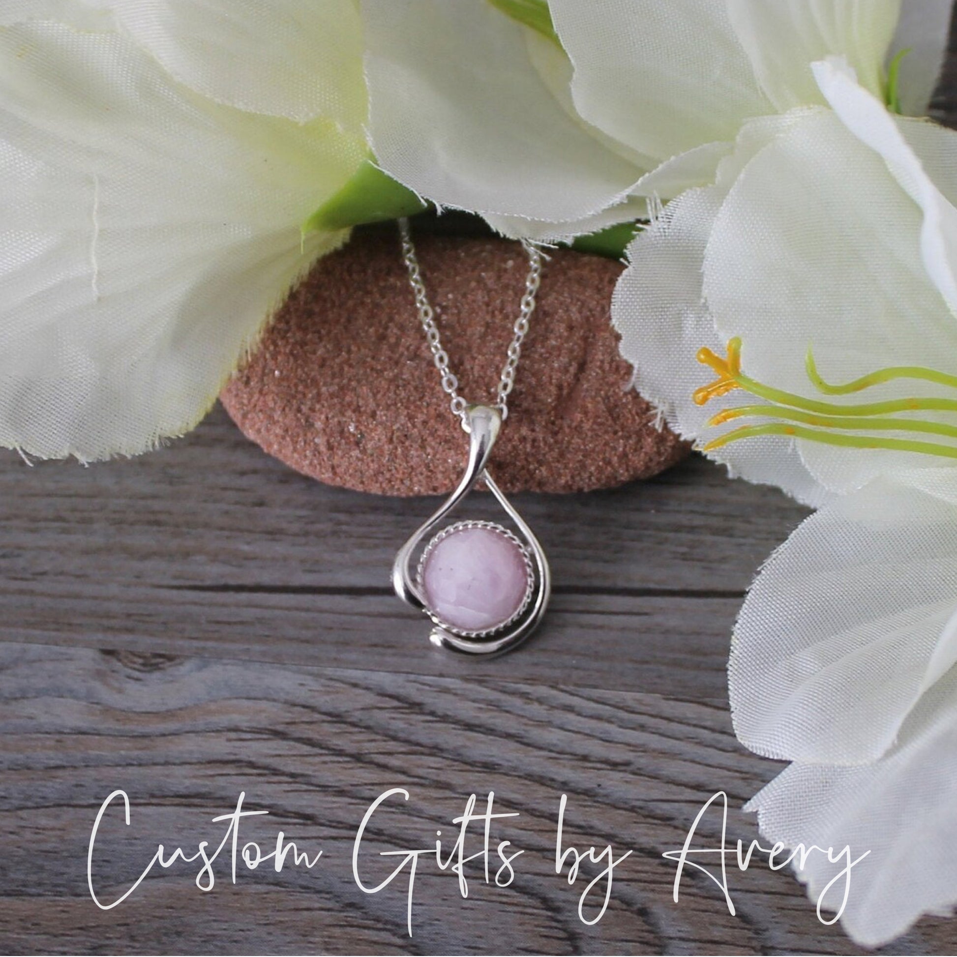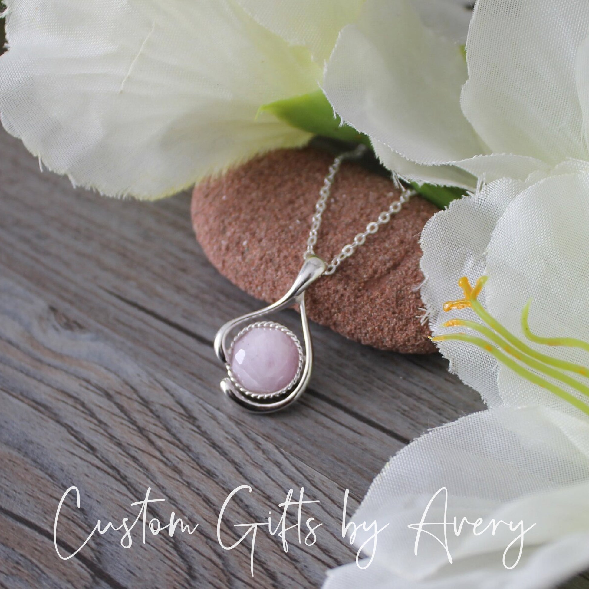 This elegant sterling silver necklace features a beautiful soft pinky purple kunzite gemstone.