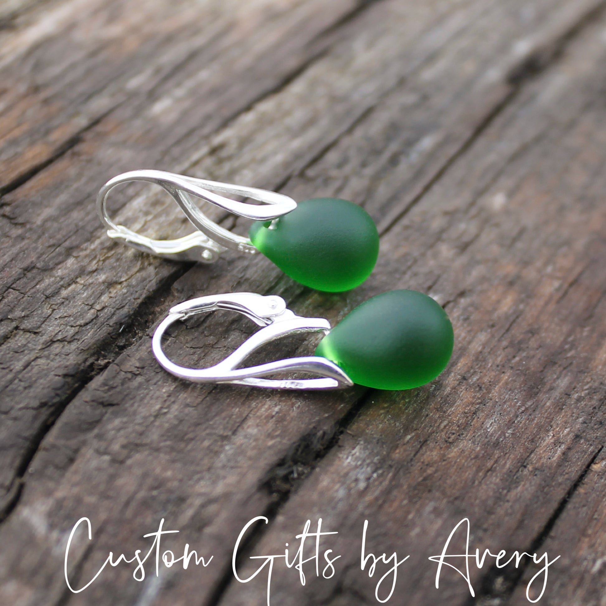 These cultured sea glass earrings are made with high-quality frosted glass that resembles ocean tumbled sea glass, but is consistent in shape, colour, and size and comes at a fraction of the price! These gorgeous little gems are hung on high quality, nickel-free sterling silver lever backs or decorative fish hook ear wires (in sterling silver, 18Kt rose gold vermeil, or 24kt gold vermeil).