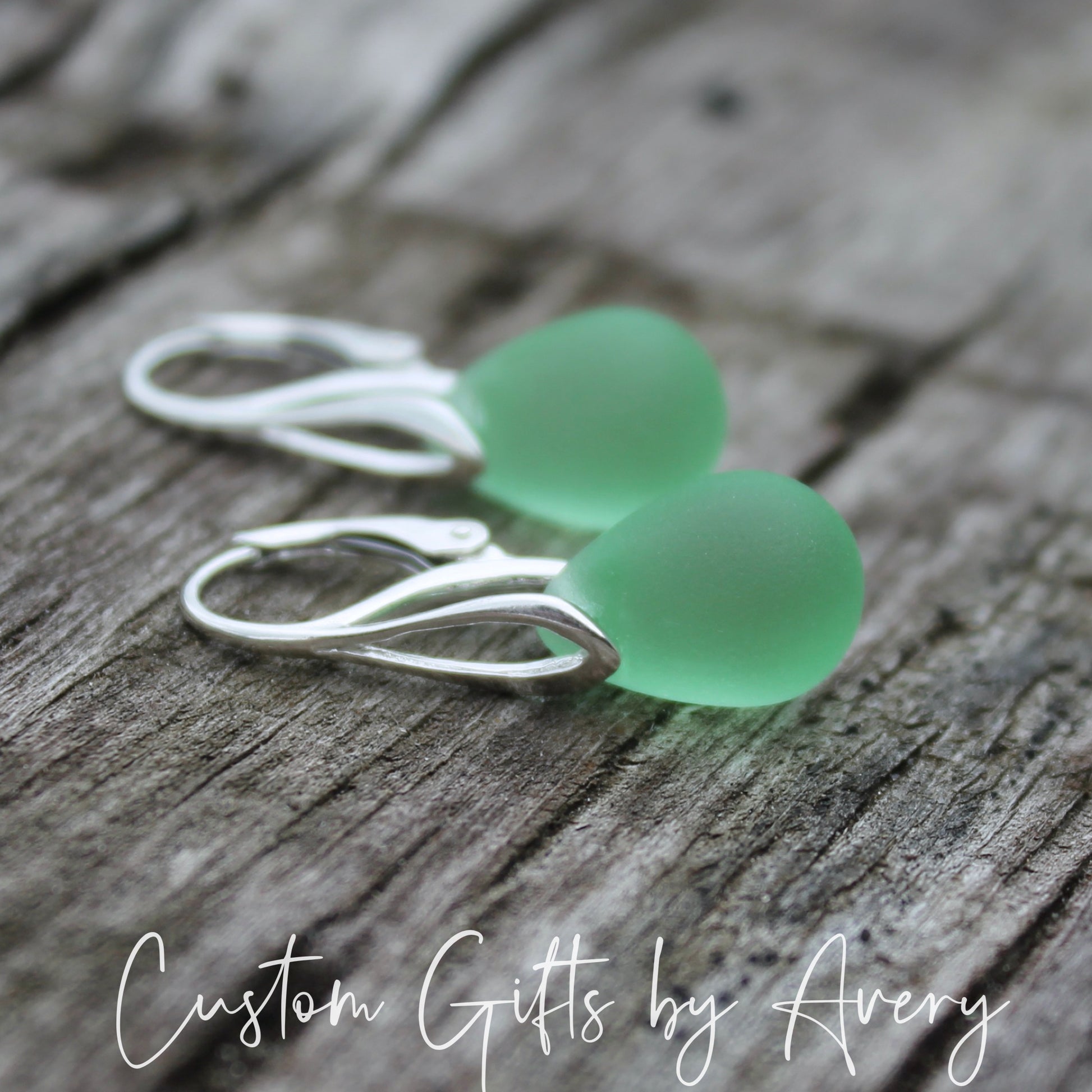 These cultured sea glass earrings are made with high-quality frosted glass that resembles ocean tumbled sea glass, but is consistent in shape, colour, and size and comes at a fraction of the price! These gorgeous little gems are hung on high quality, nickel-free sterling silver lever backs or decorative fish hook ear wires (in sterling silver, 18Kt rose gold vermeil, or 24kt gold vermeil).