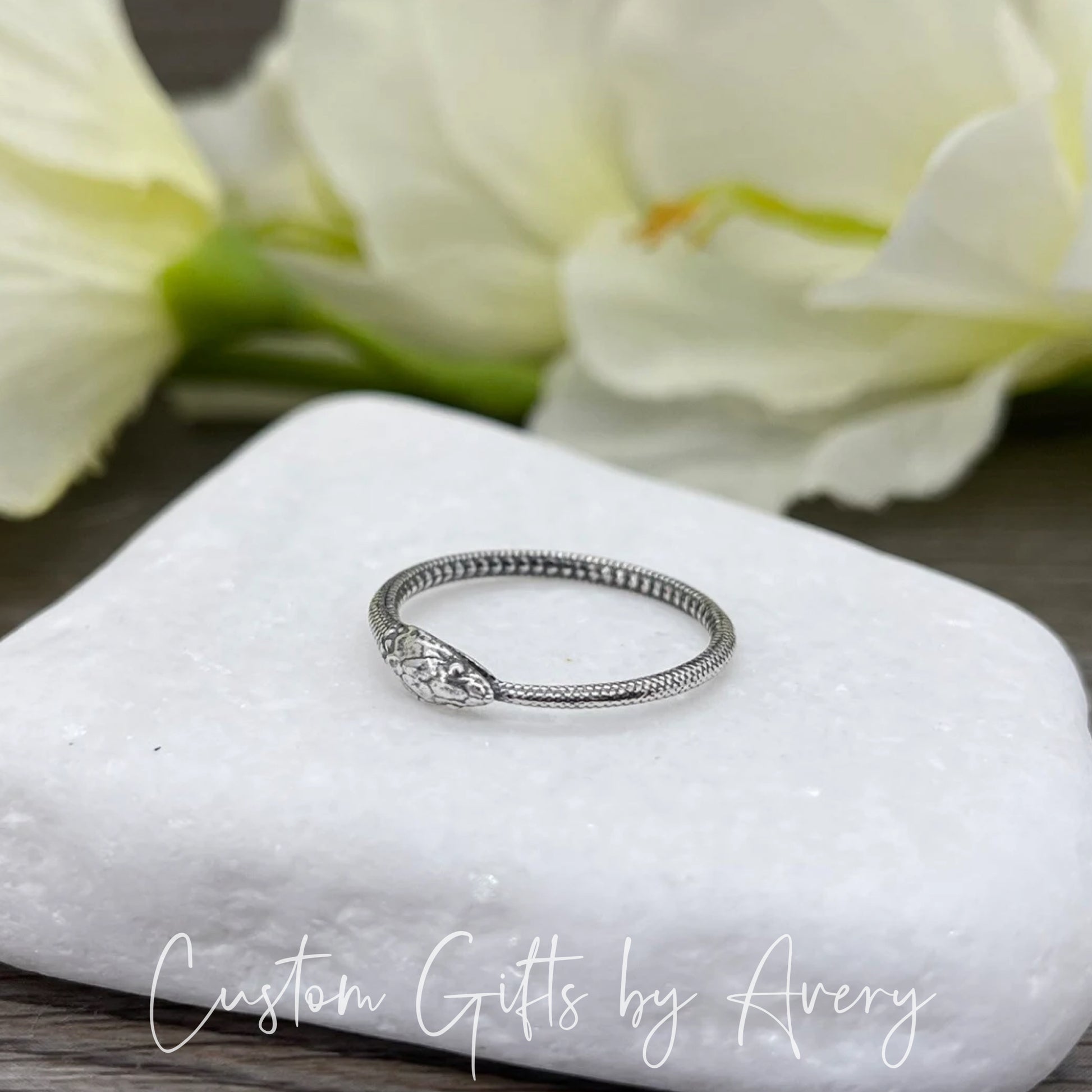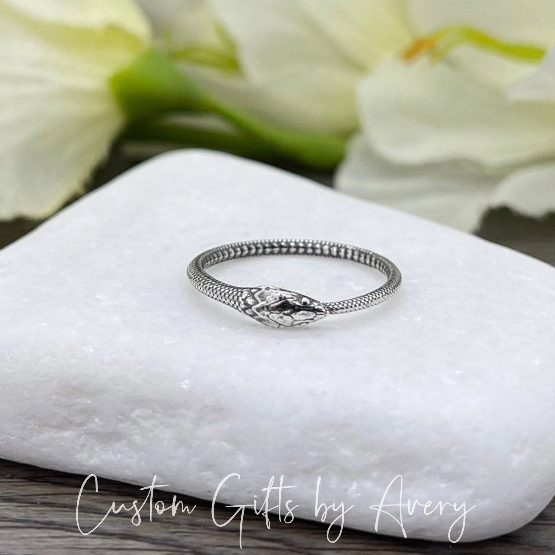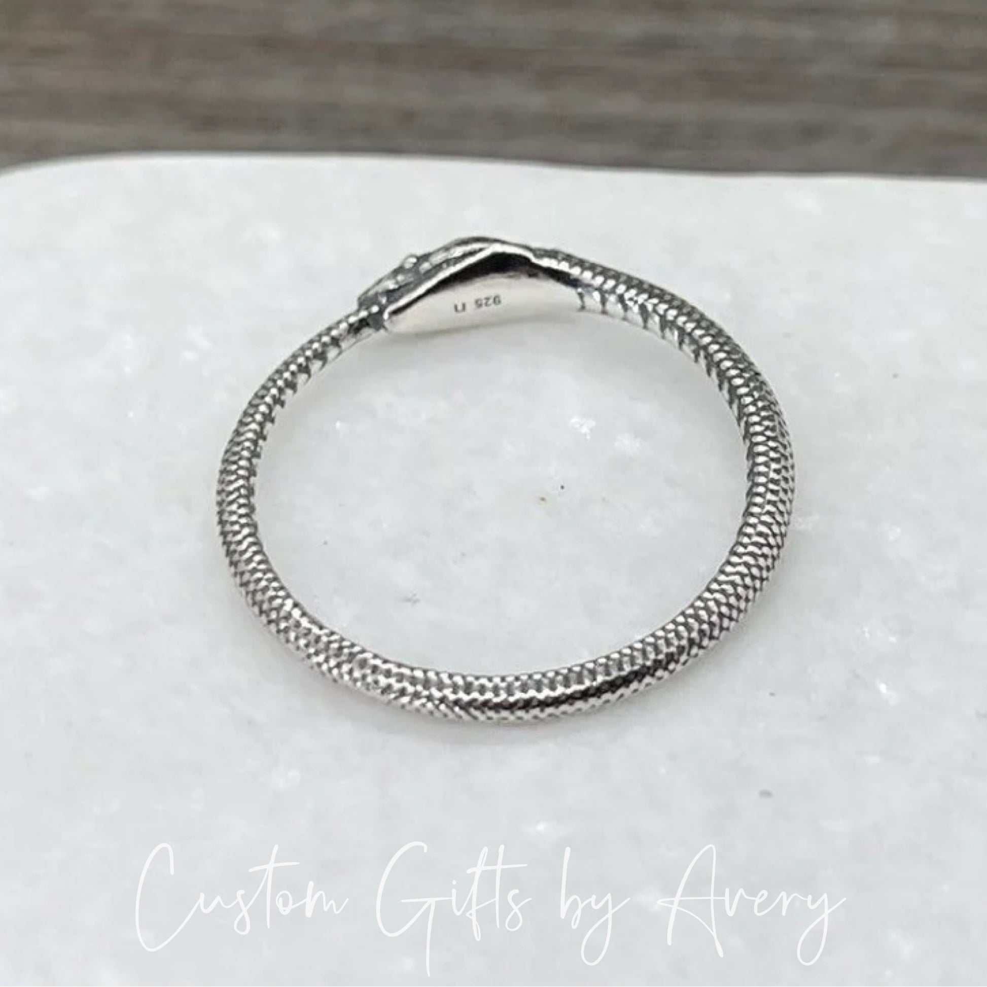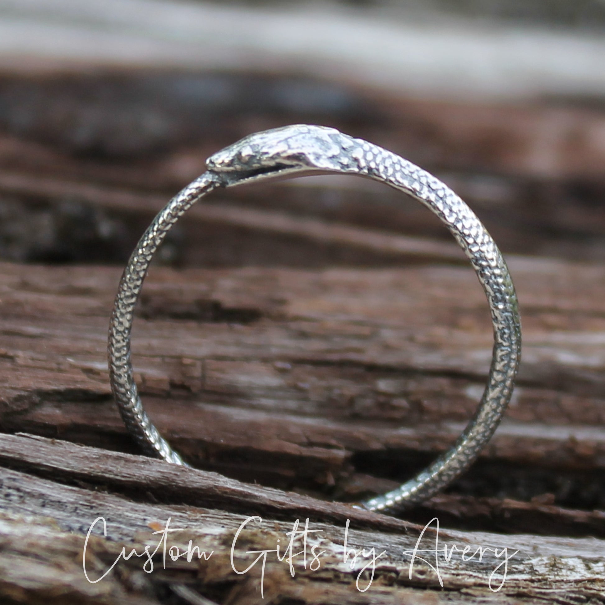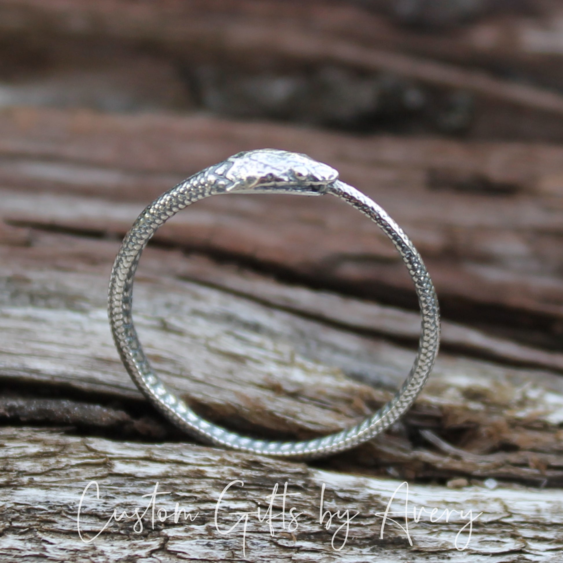 This minimalist Ouroboros snake ring is crafted from sterling silver. The Ouroboros is an Ancient Symbol of a Serpent or Dragon biting, devouring, or eating its own tail. It is a powerful symbol of the cyclic nature of death and rebirth.
