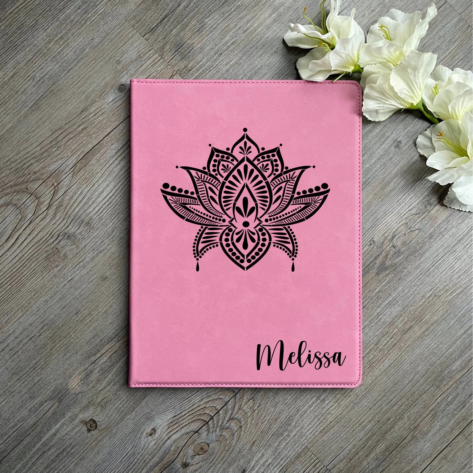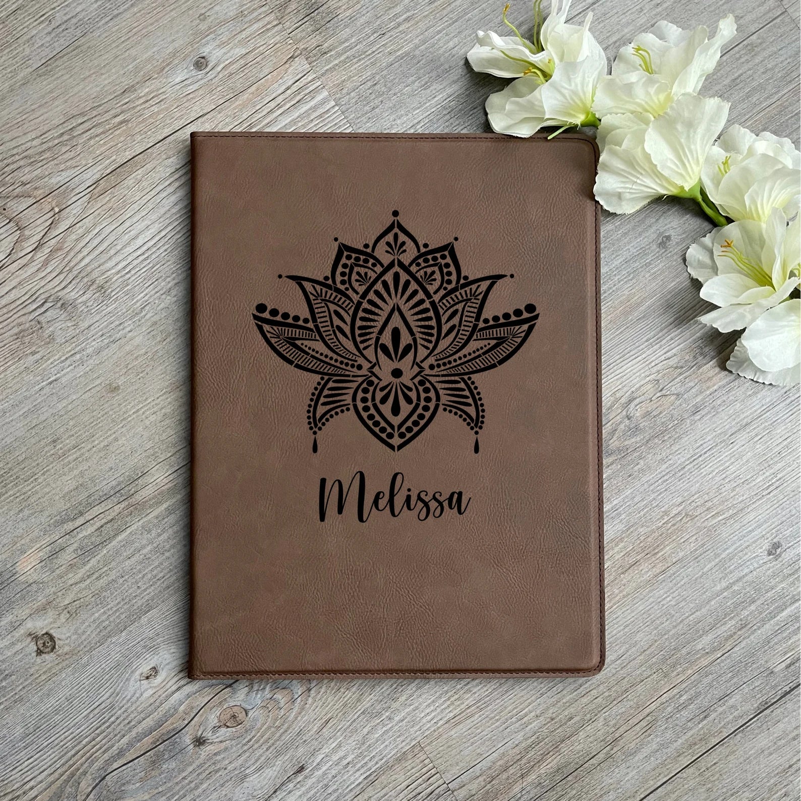 Personalized Leatherette Portfolio ~ Lotus Mandala