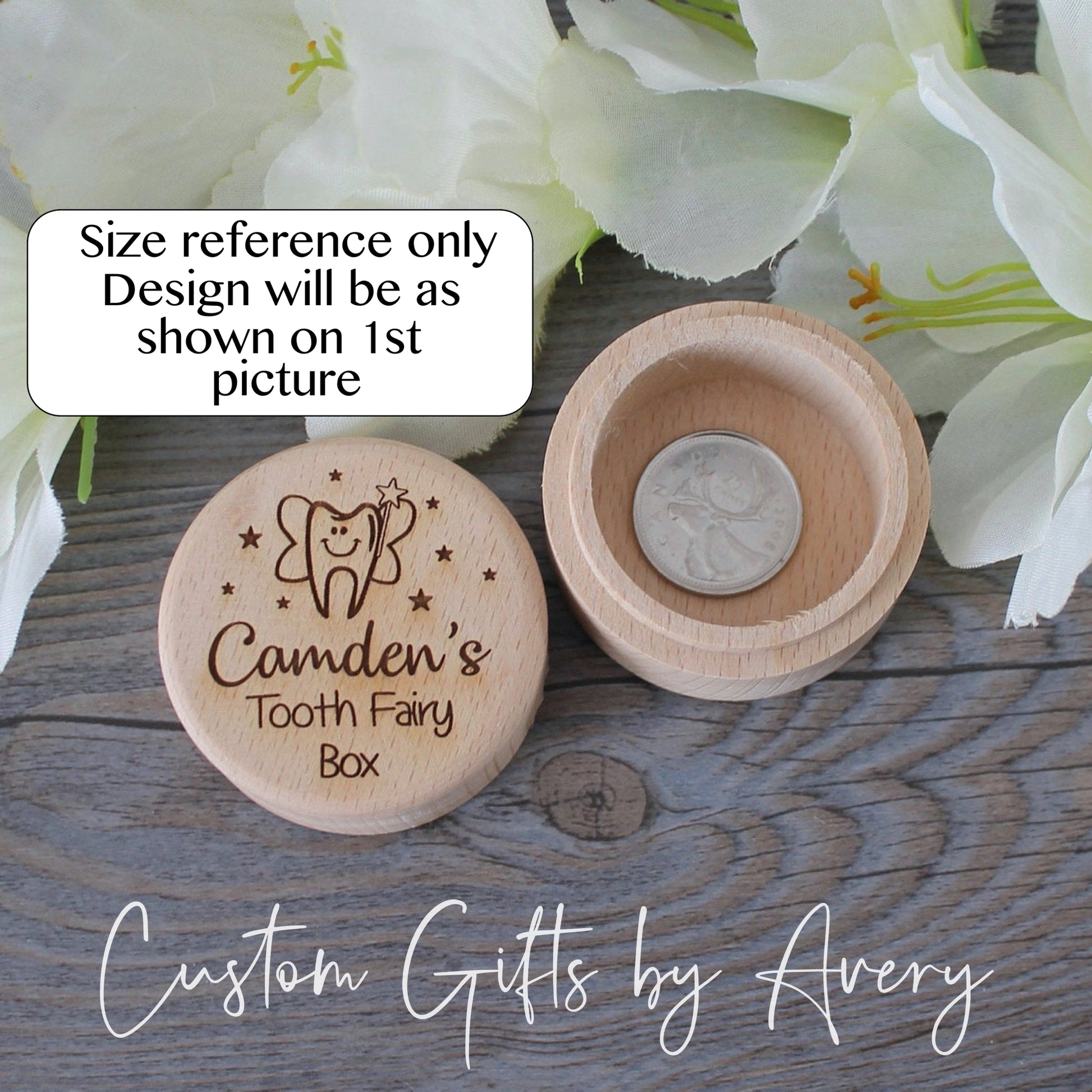 This laser engraved beech wood box is a beautiful way to keep those baby teeth safe for the tooth fairy. Personalized with your child's name, this keepsake box comes ready for gifting in an organza bag.