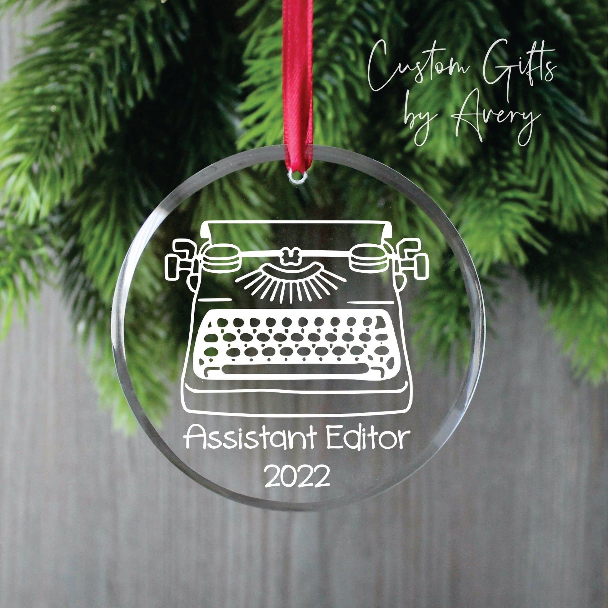 Personalized Glass Christmas Ornament ~ Typewriter