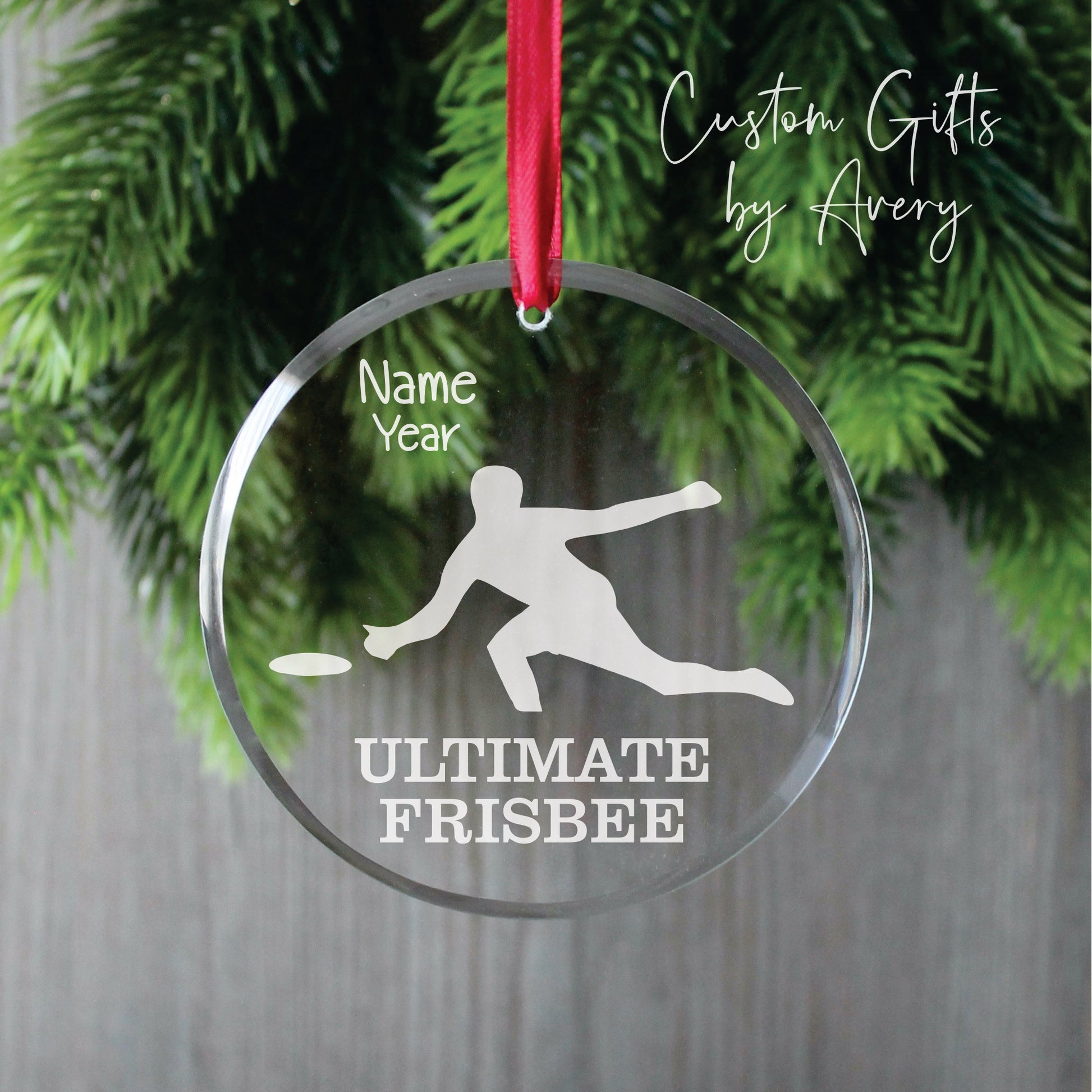 Personalized Glass Christmas Ornament ~ Male Ultimate Frisbee Player