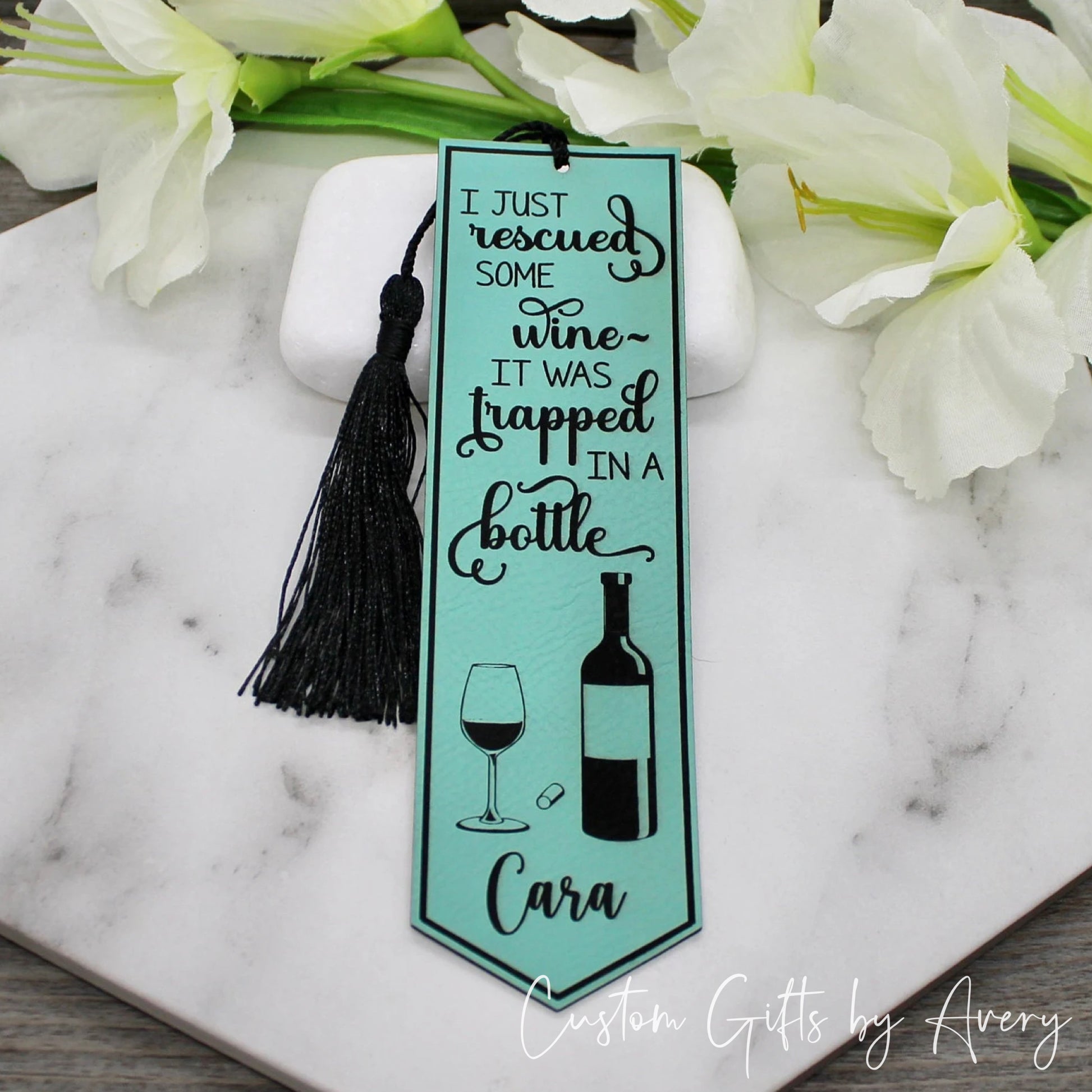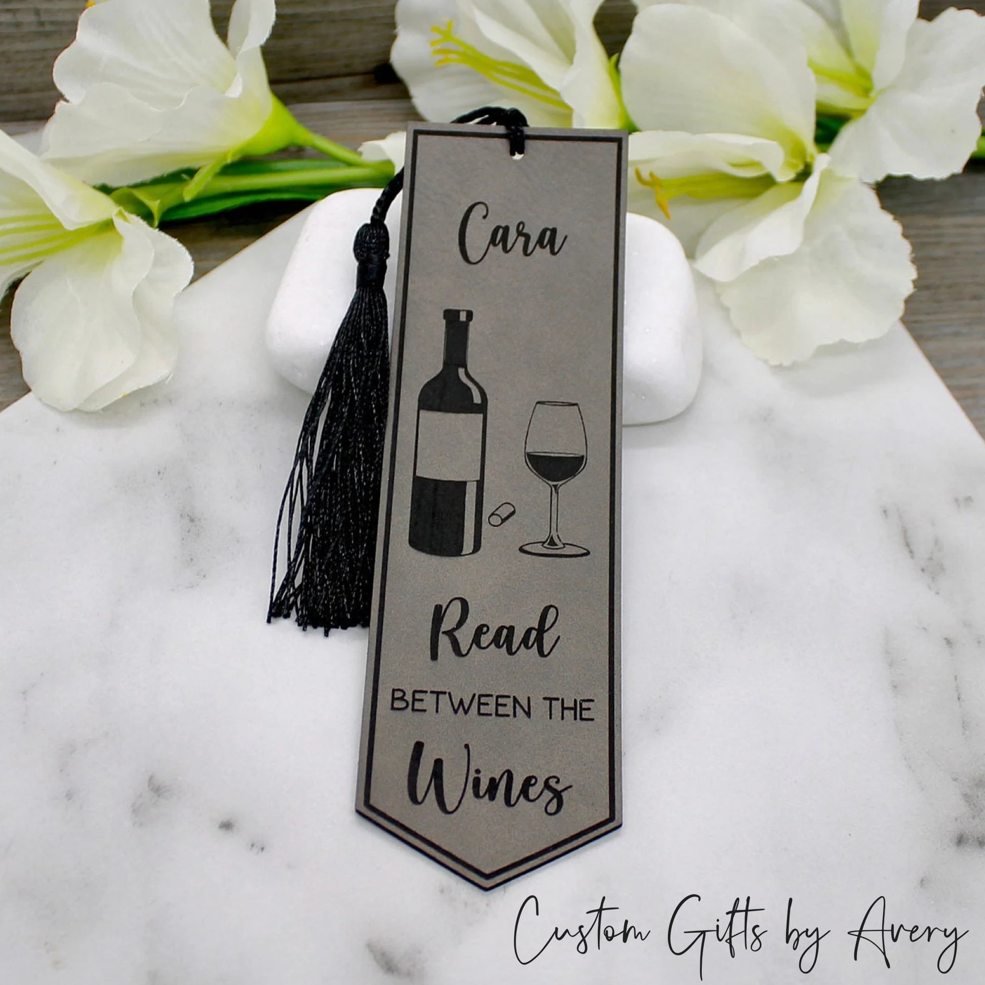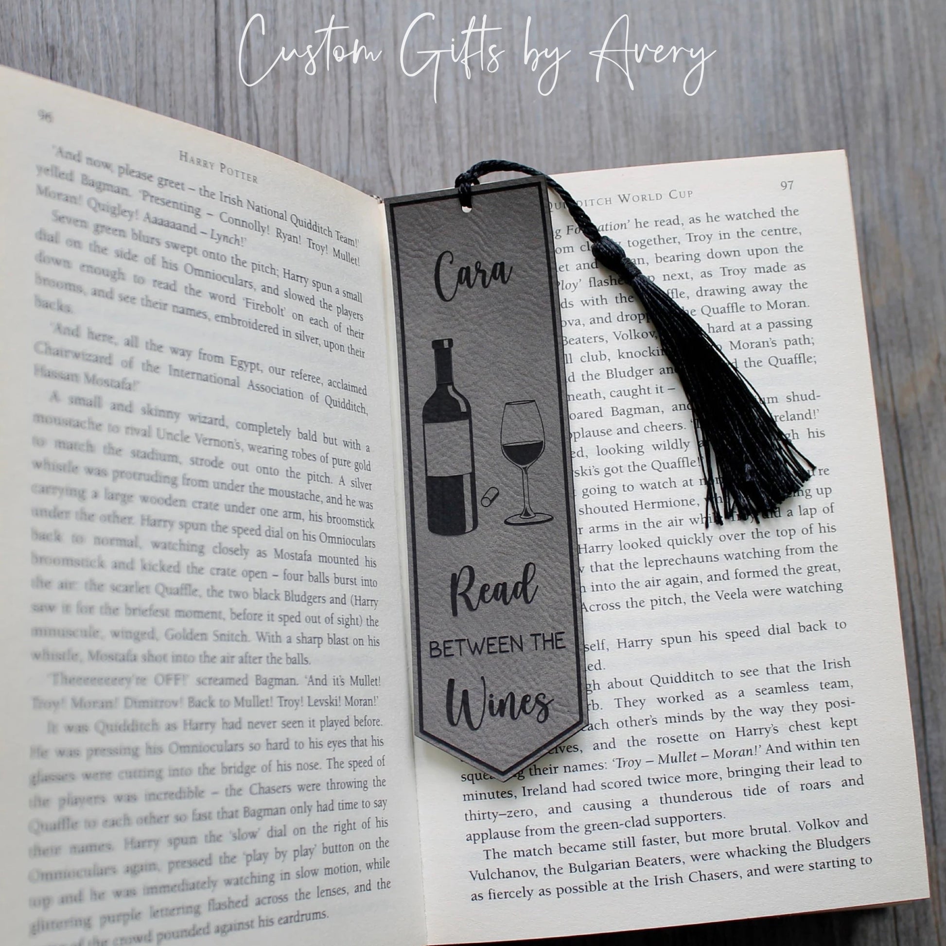 A high quality, beautifully engraved vegan leatherette bookmark personalized with the name of your choosing.