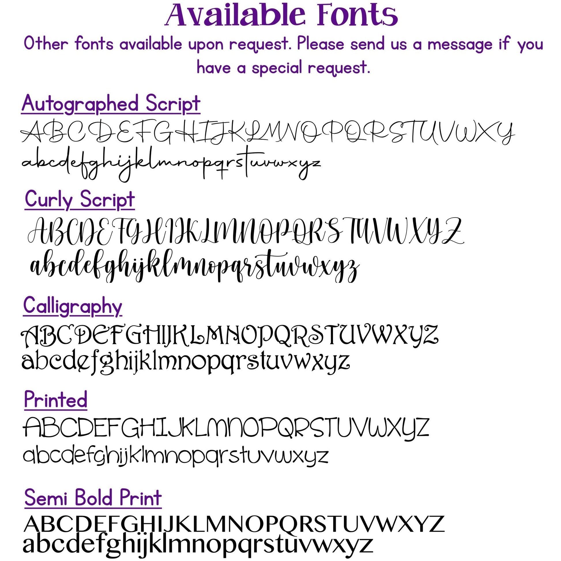 Digital proofs are available upon request. When requested, digital design images will be sent to the email address attached to the order within 24-48 hours. Please note that a delay in design confirmation will affect production time. If no response is received after 36 hours, production will continue with the design image as it stands.
