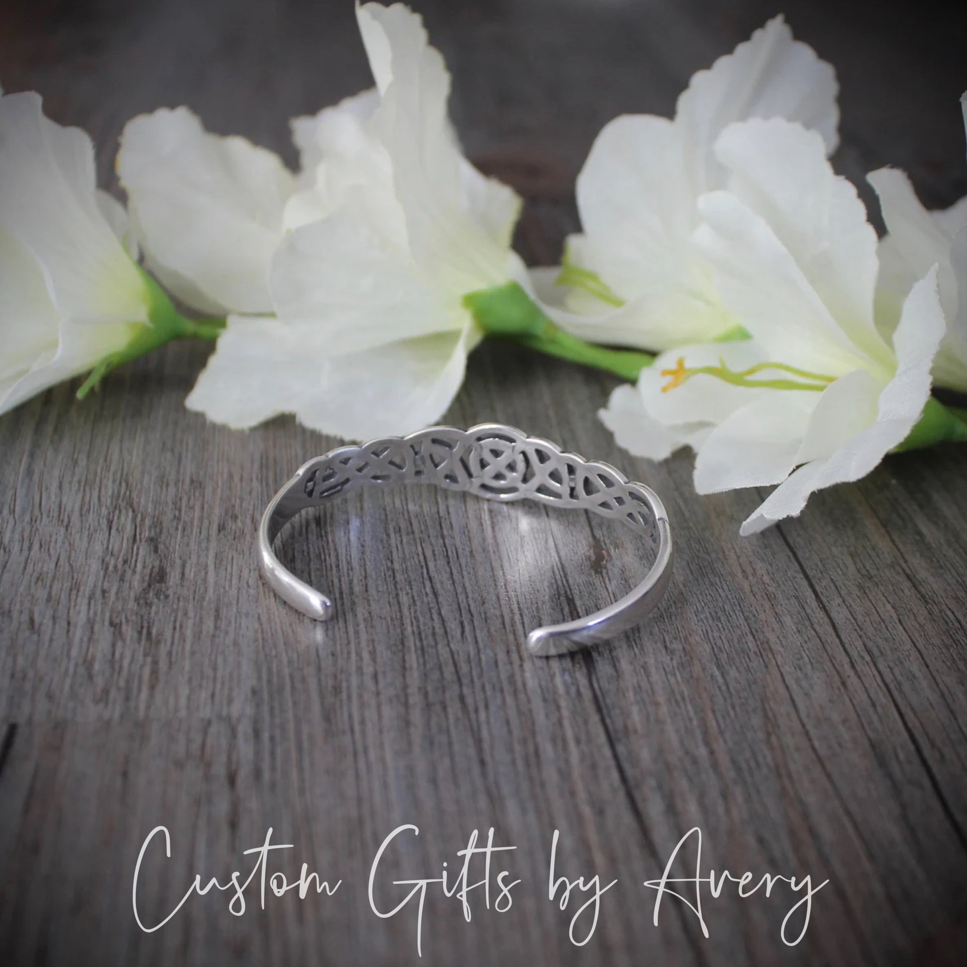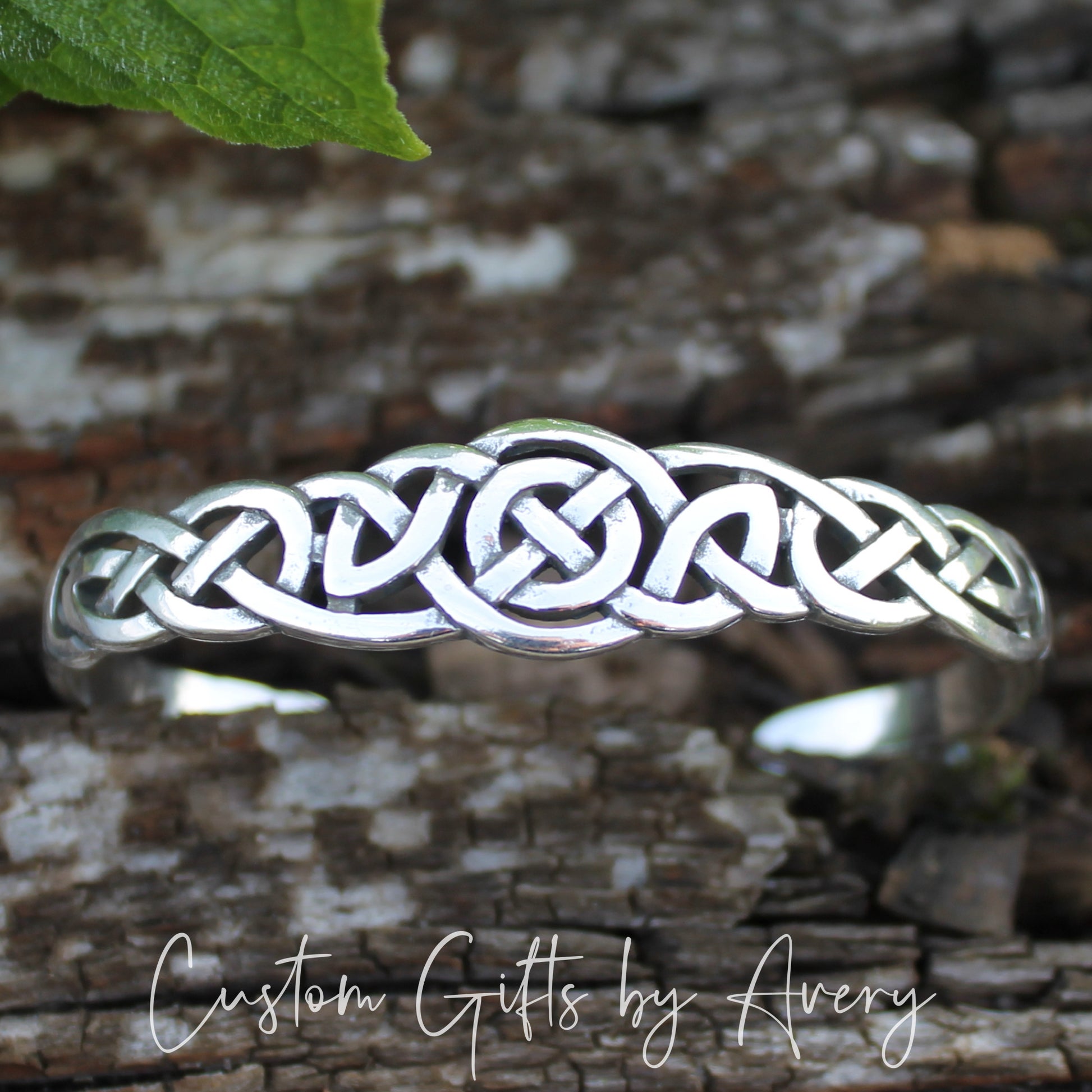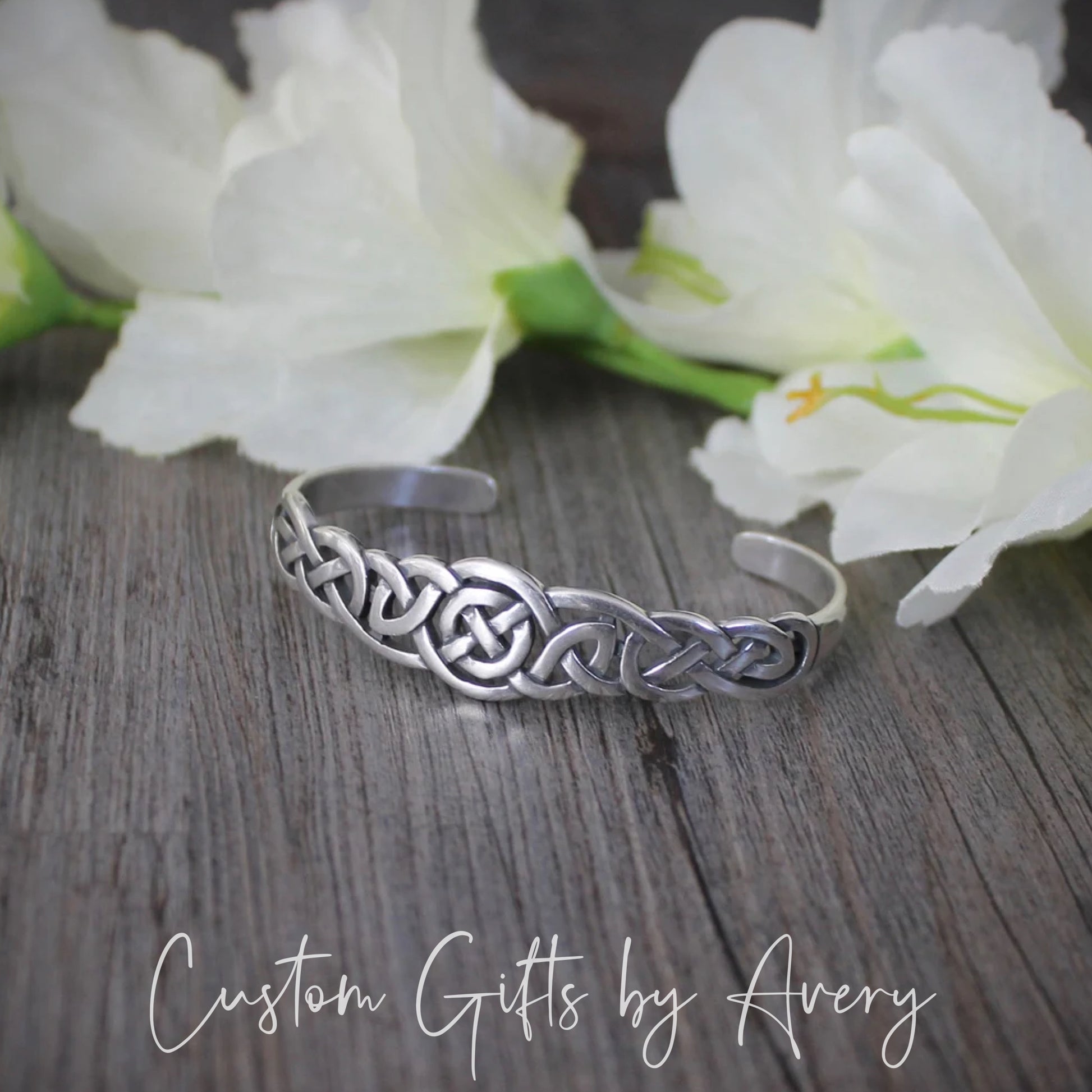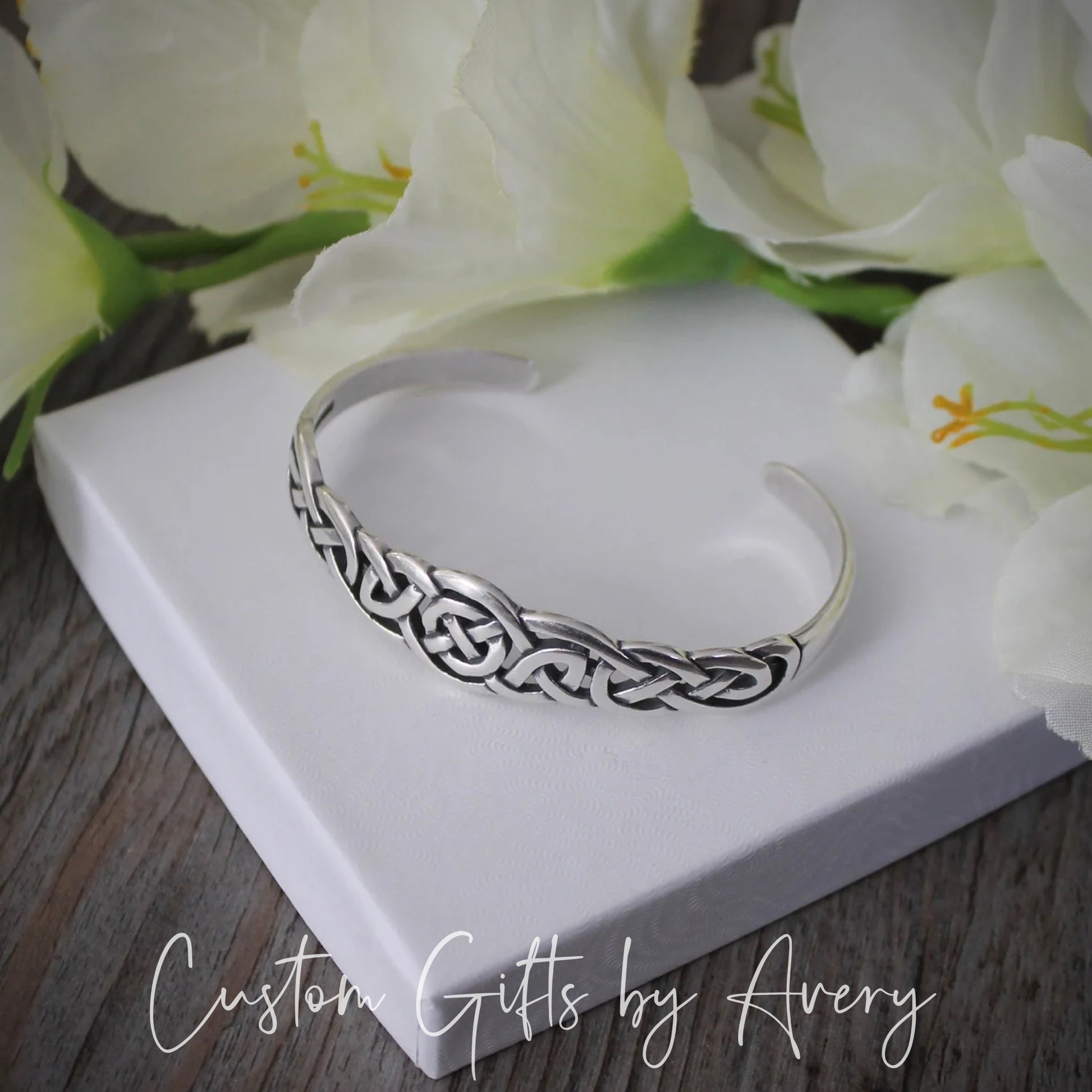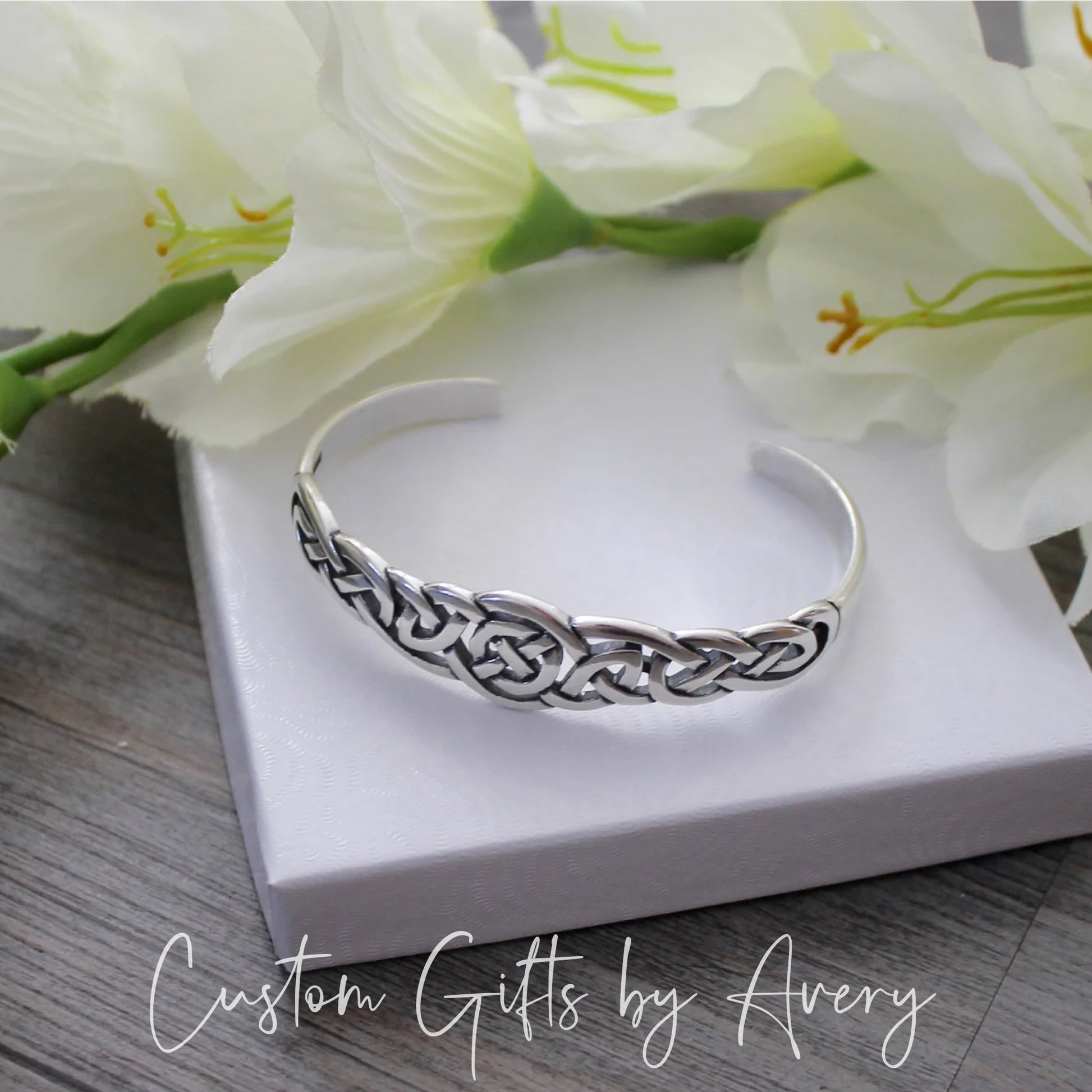 Solid Sterling Silver Adjustable Celtic Cuff Bracelet