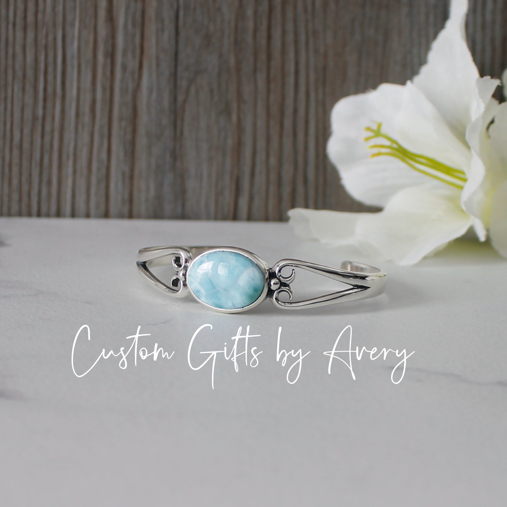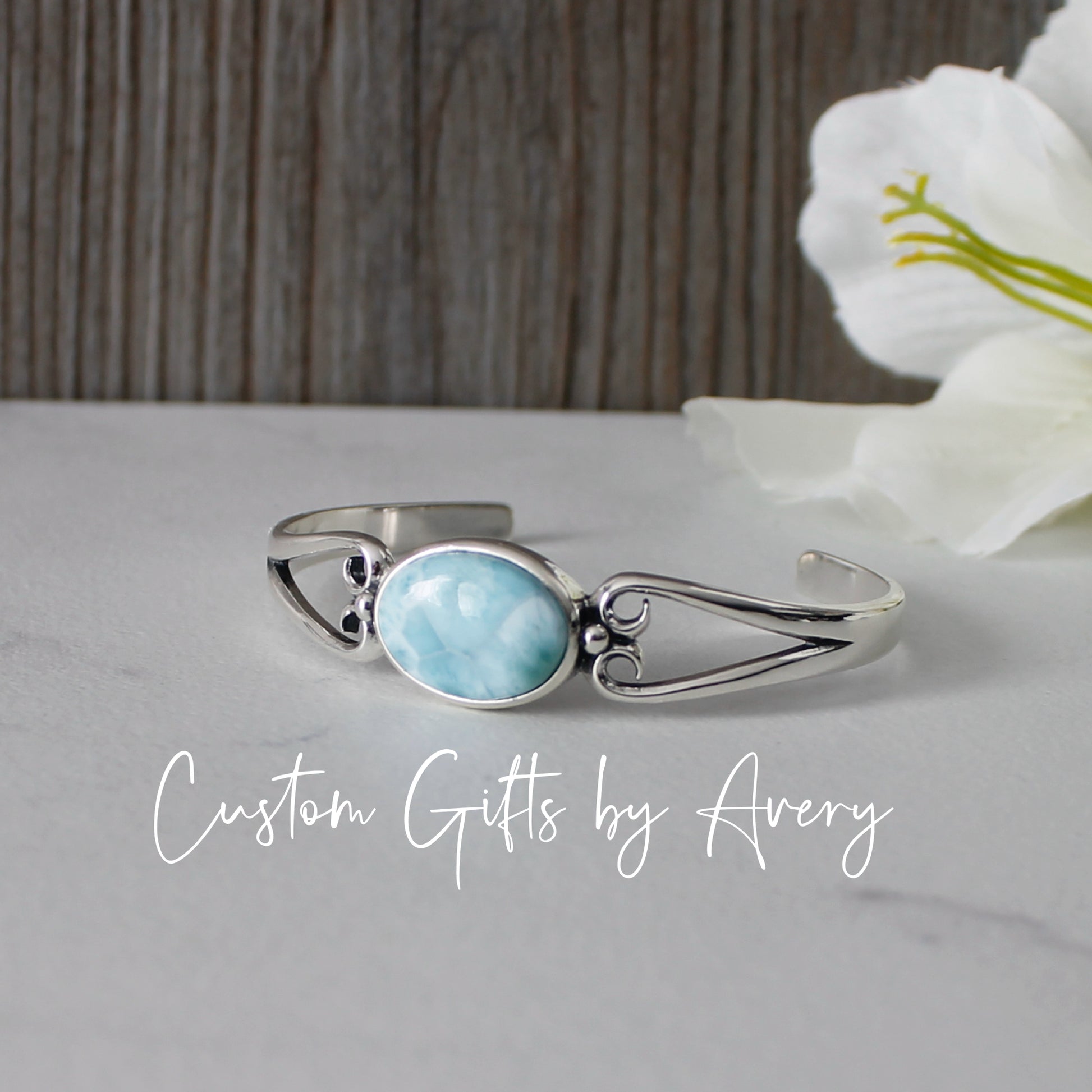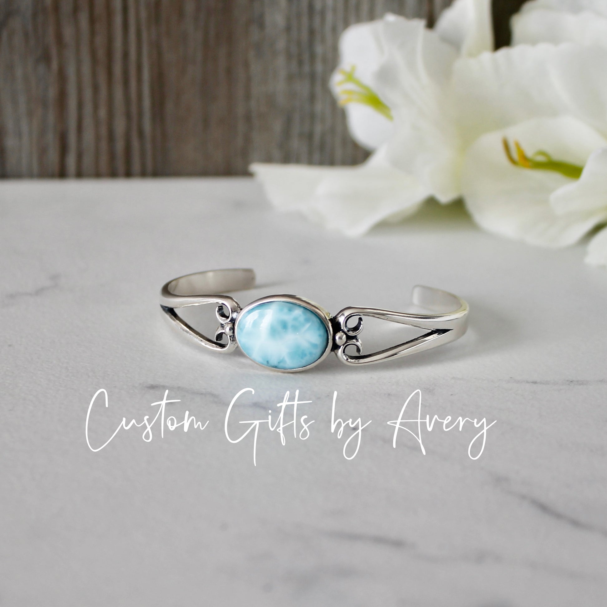 All larimar gemstones are high grade (AA), natural gemstones. Like all natural gemstones, markings and colourings will vary from stone to stone. All the larimar gemstones in these cuffs are carefully selected for a beautiful colouring and marking.