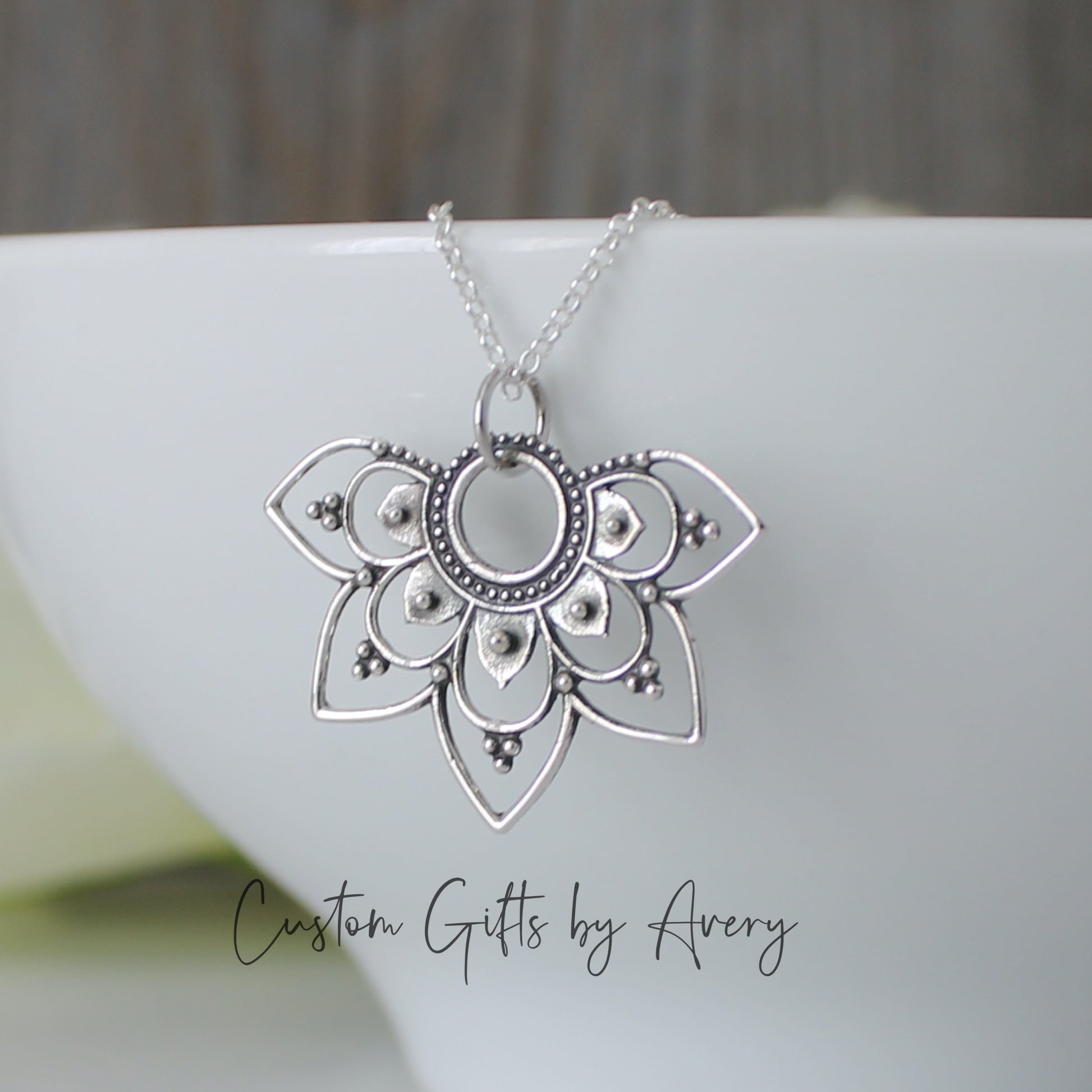 Sterling Silver 1/2 Lotus Mandala Necklace
