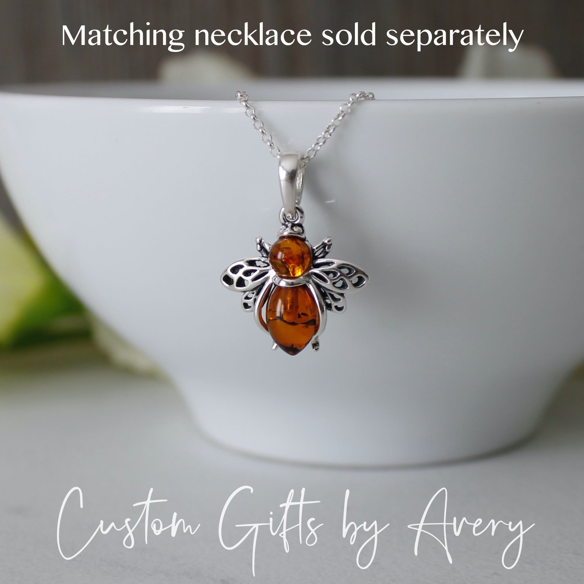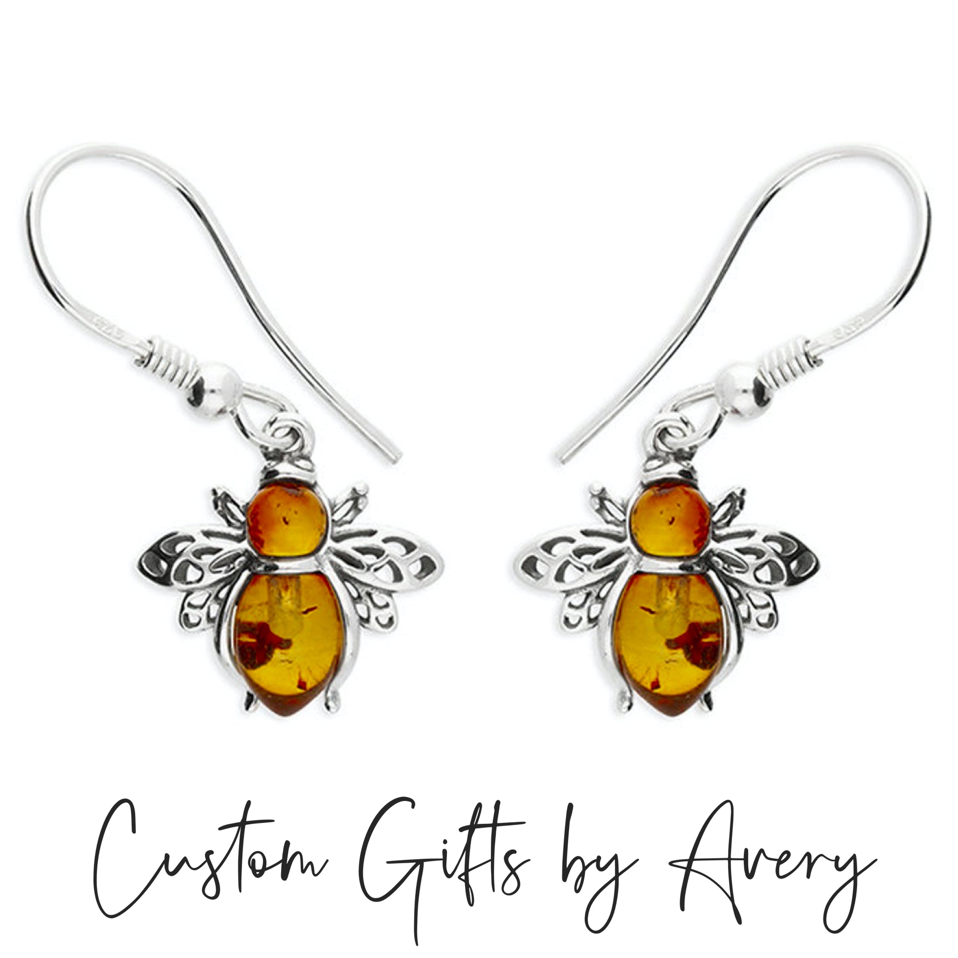 A beautiful set of little honey bees crafted in solid .925 sterling silver with genuine Baltic amber. These gorgeous little bees float freely on decorative .925 sterling silver ear wires.