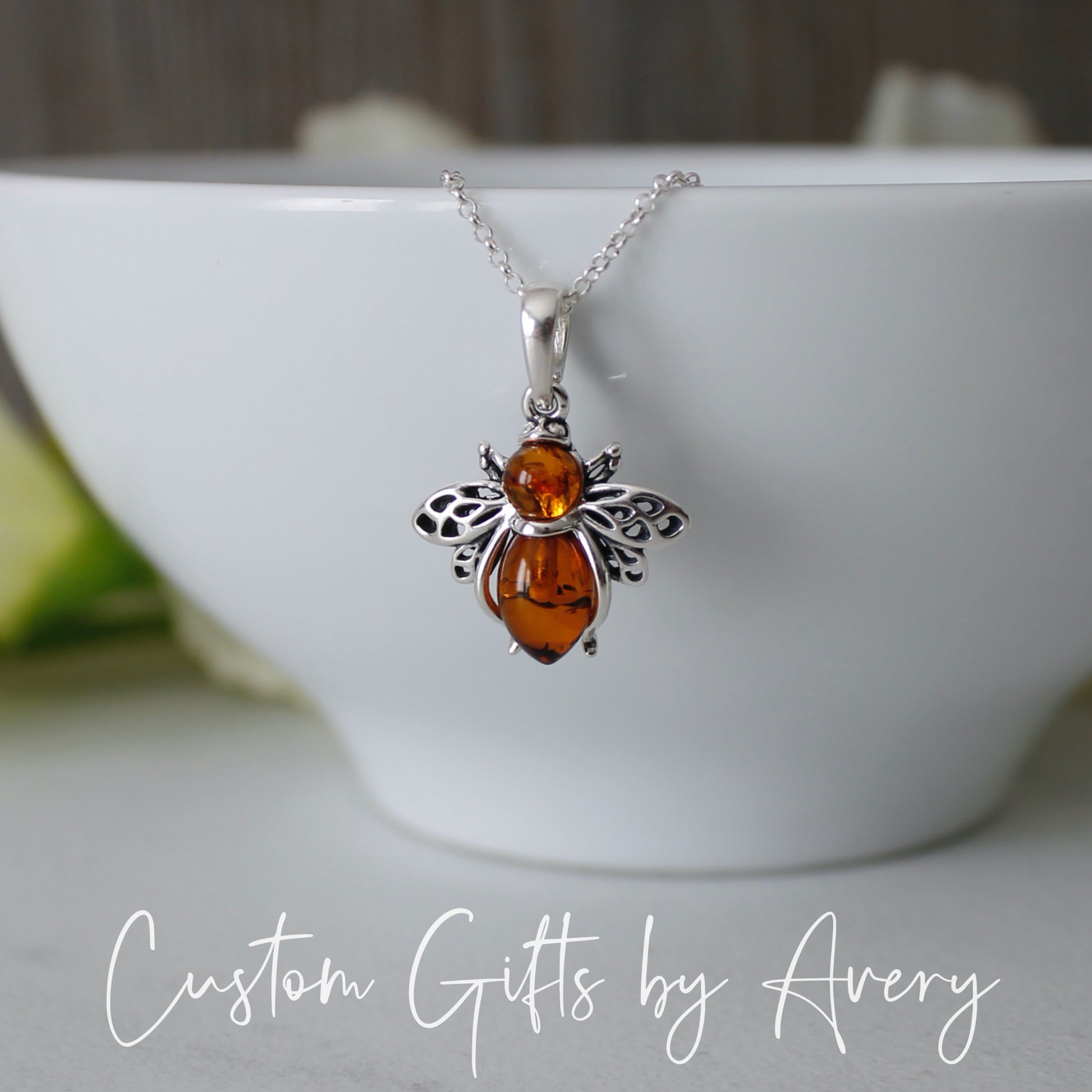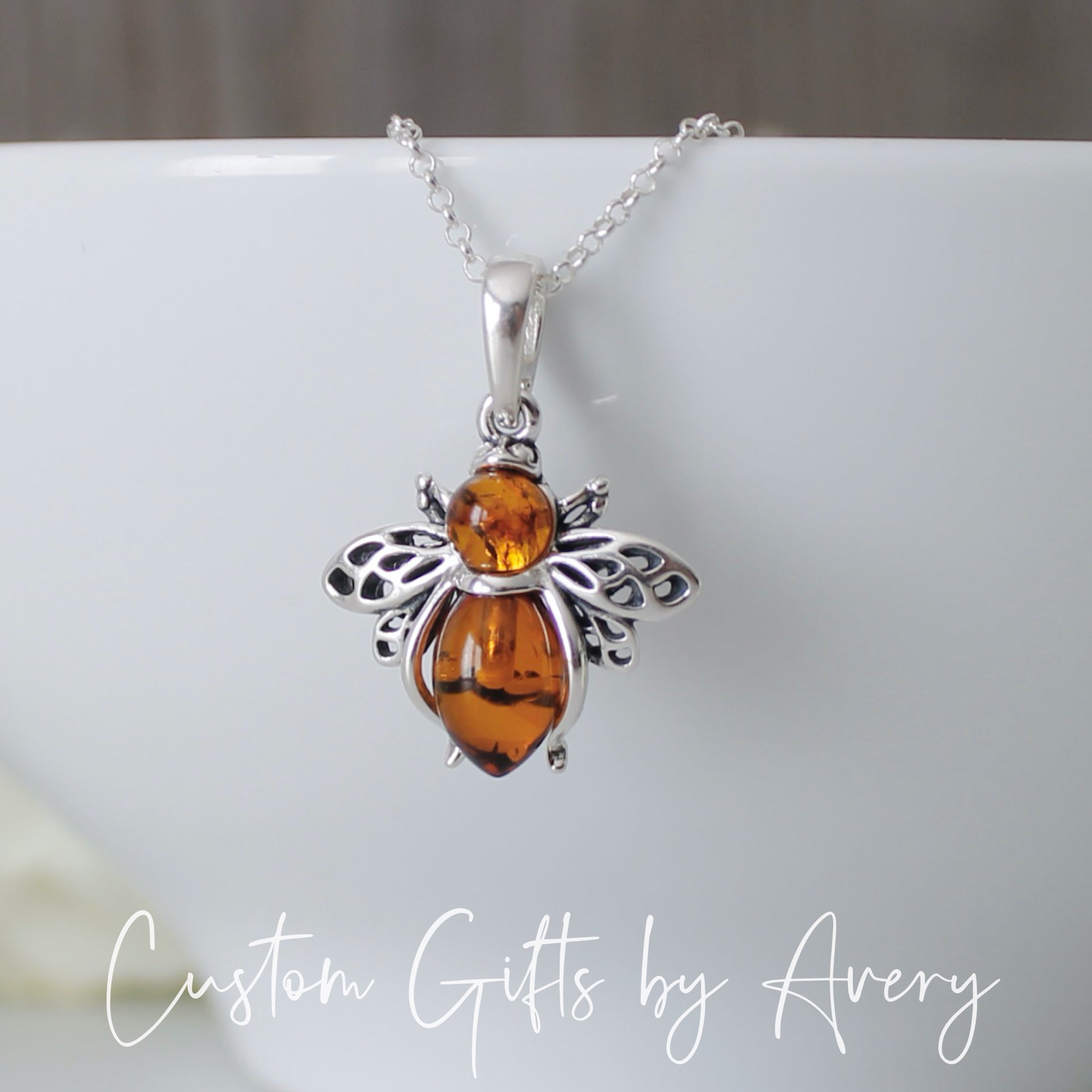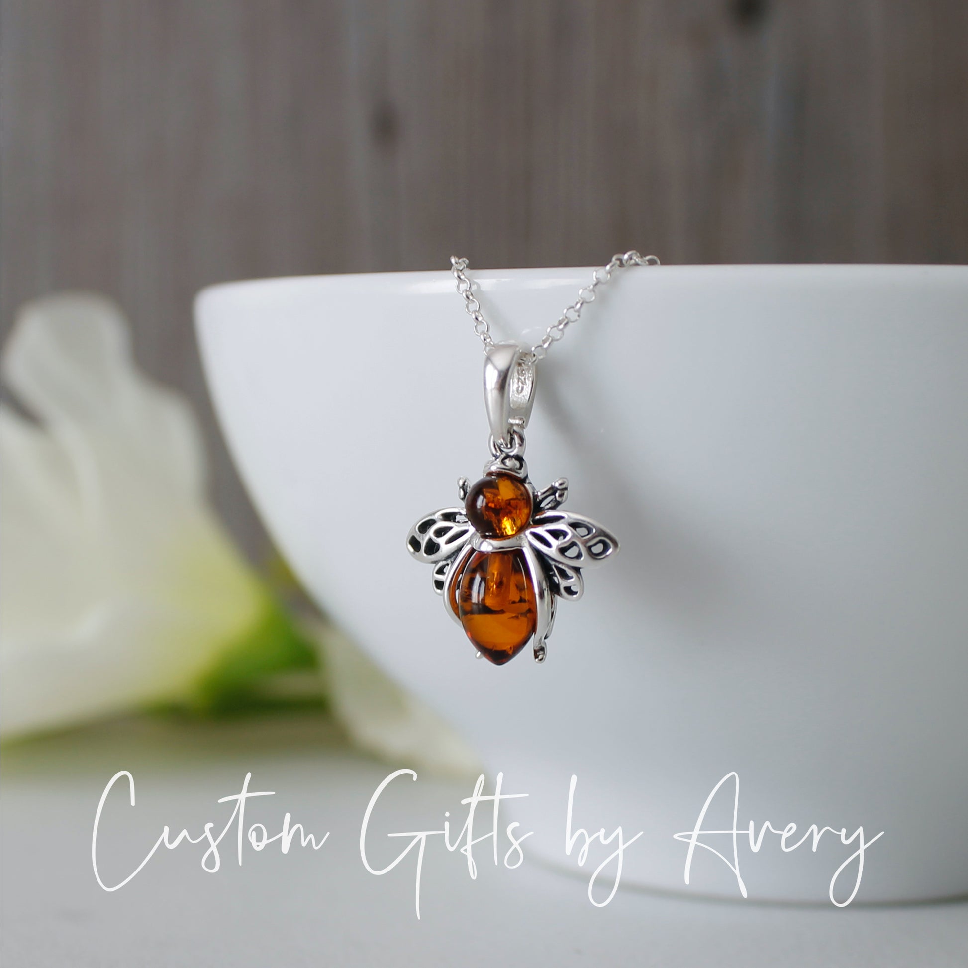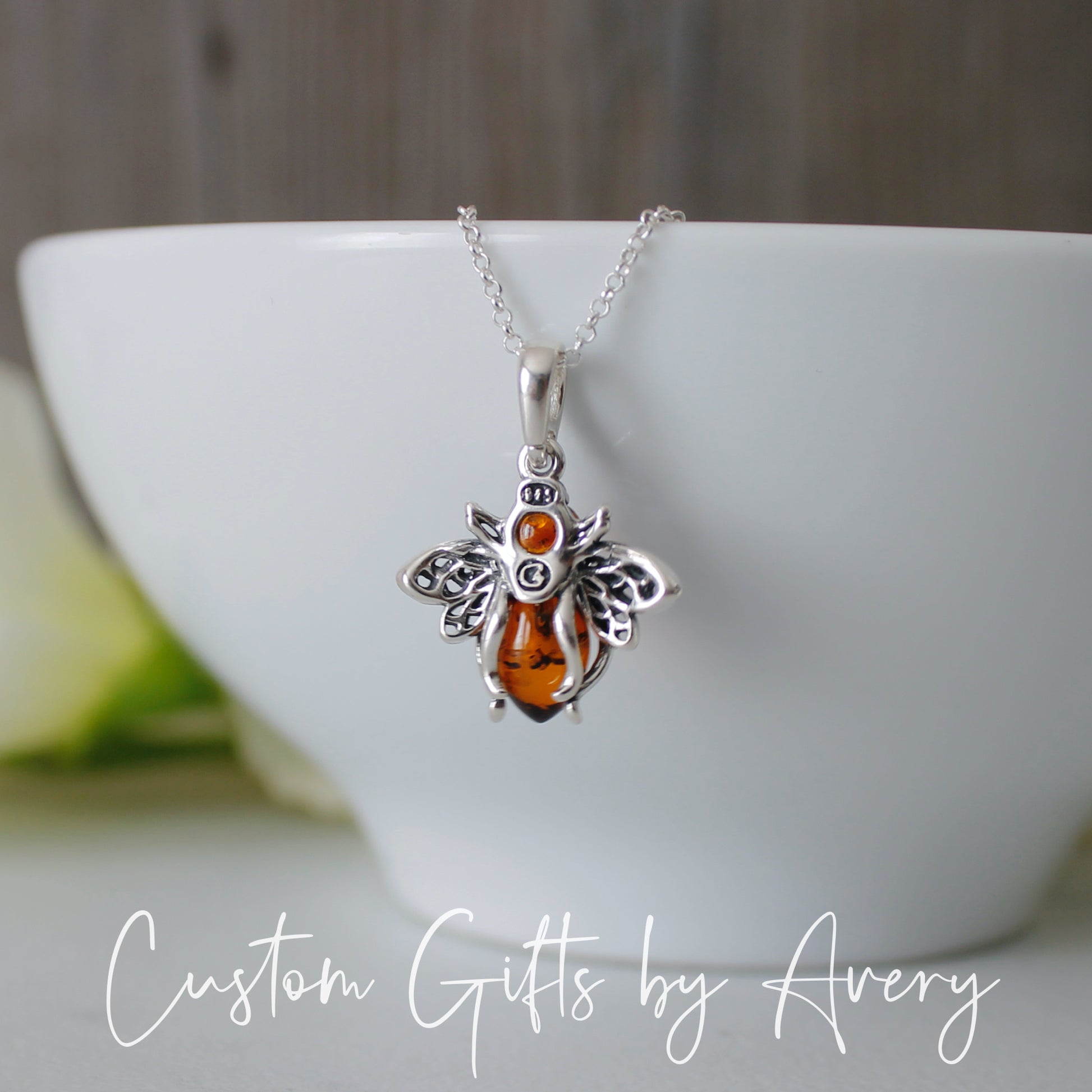 A beautiful little honey bee crafted in solid .925 sterling silver with genuine Baltic amber.