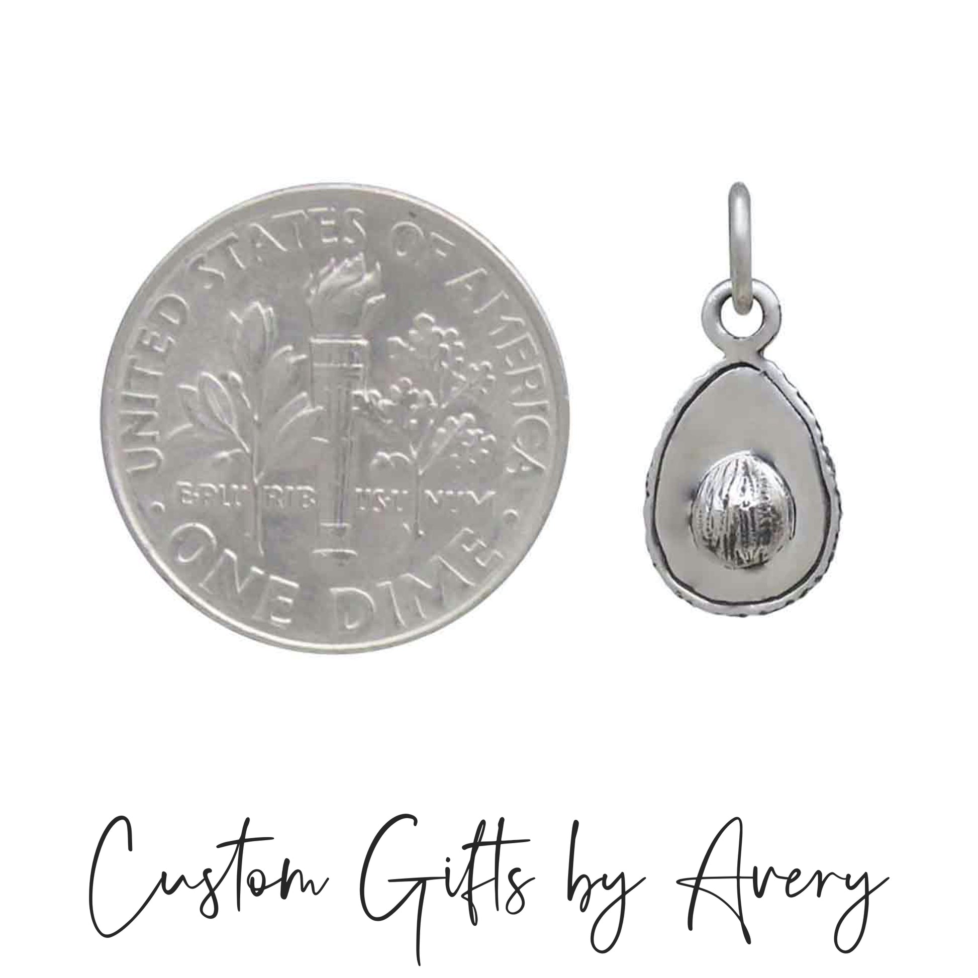 This petite sterling silver avocado is beautifully crafted featuring a three-dimensional design, detailed textured back and a tiny detailed pit. Perfect for everyday wear this tiny but detailed piece is sure to make a lasting addition to any jewelry collection.