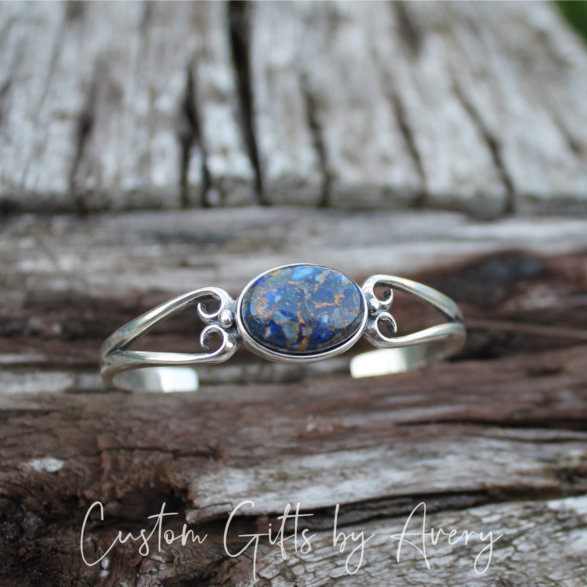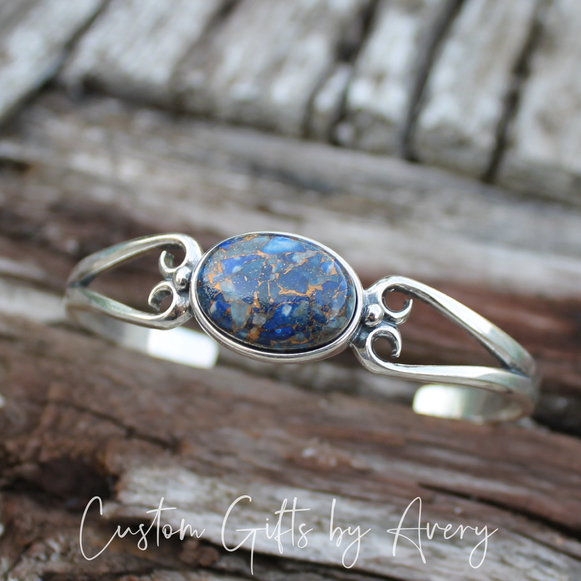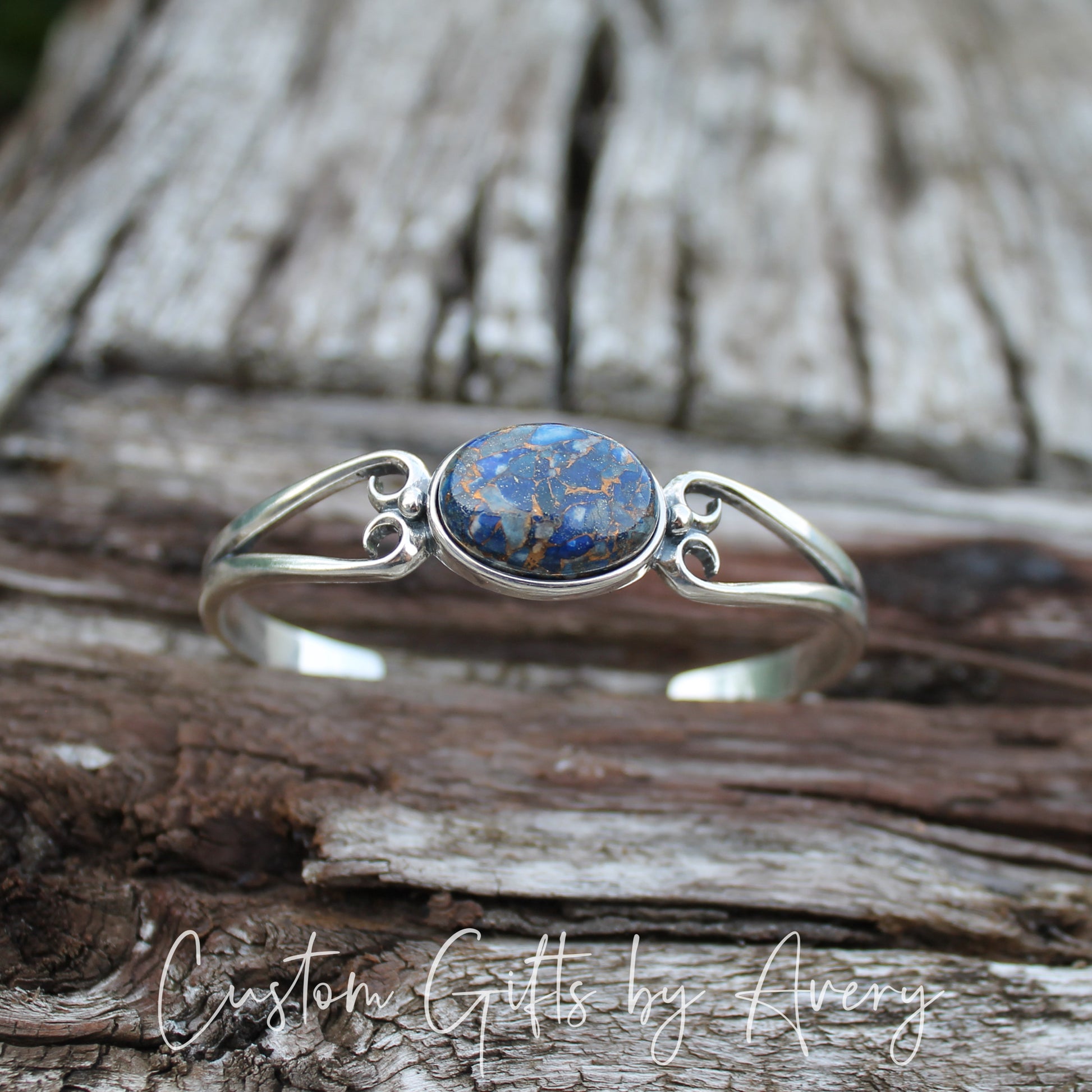 Sterling Silver & Blue Copper Lapis Lazuli Adjustable Cuff Bracelet