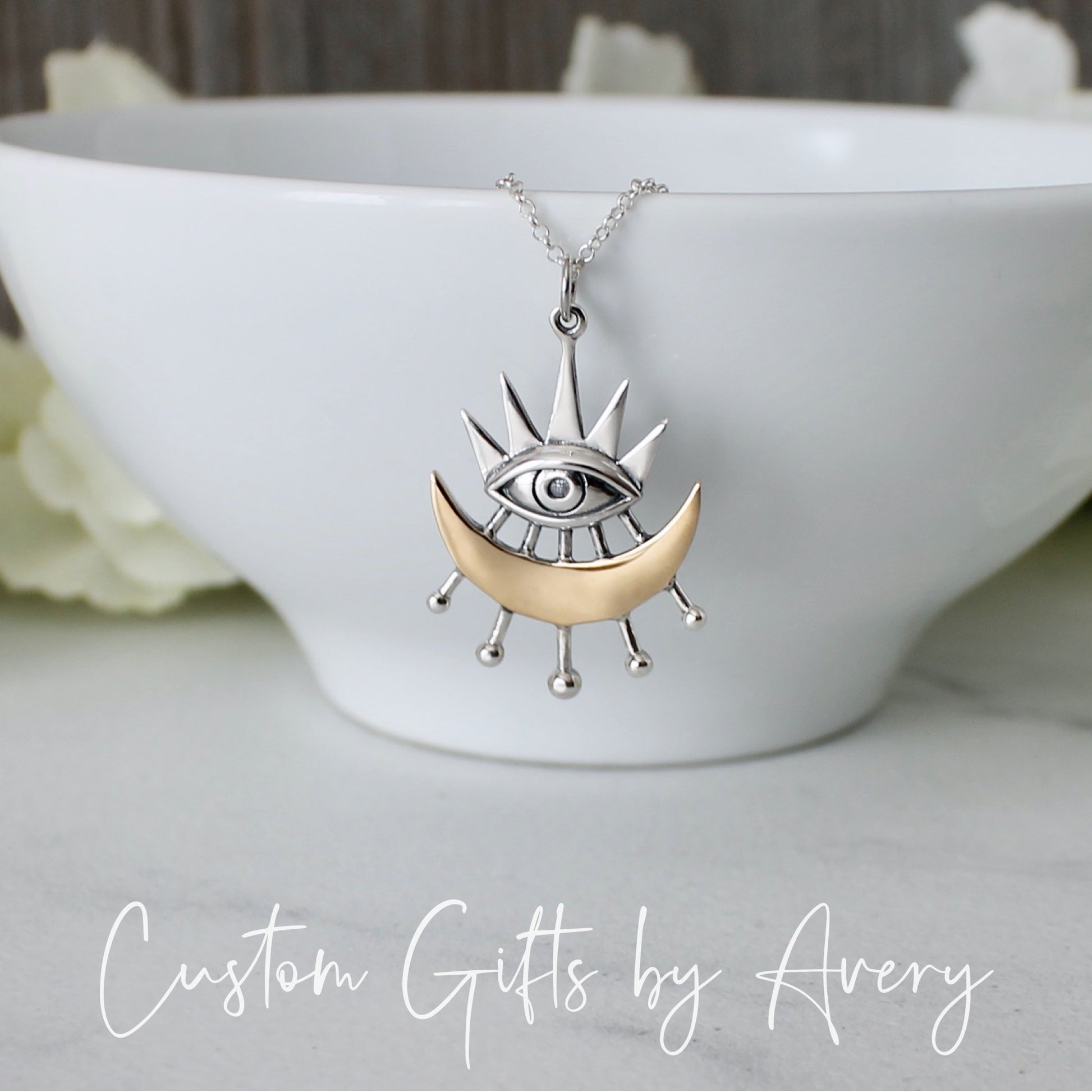 Sterling Silver & Bronze All Seeing Eye and Crescent Moon